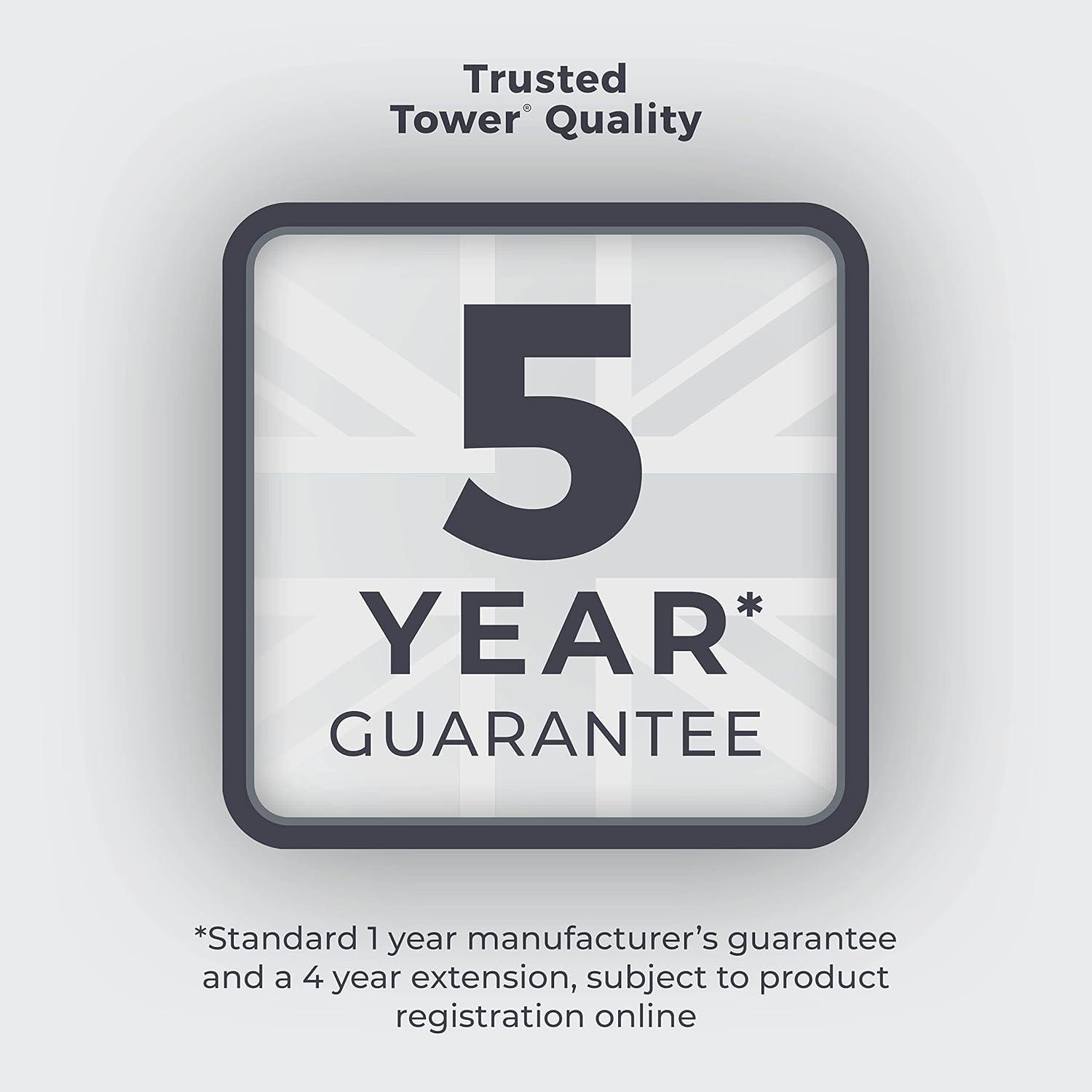 5 YEAR GUARANTEE: Trusted Tower quality with a standard 1 year guarantee and 4 year extension, subject to product registration online