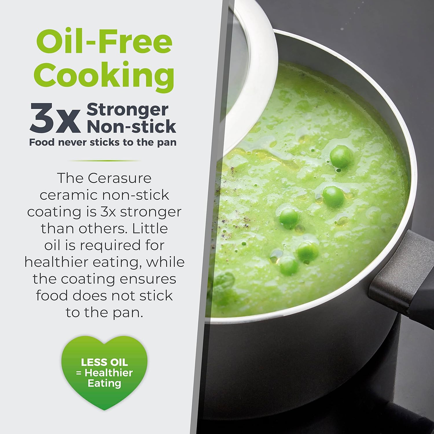 NON-STICK COATING: The Cerasure ceramic non-stick coating is 3x stronger than others, Little oil is required for healthier eating, while the coating ensures food does not stick to the pan
