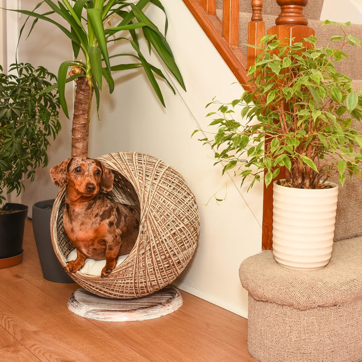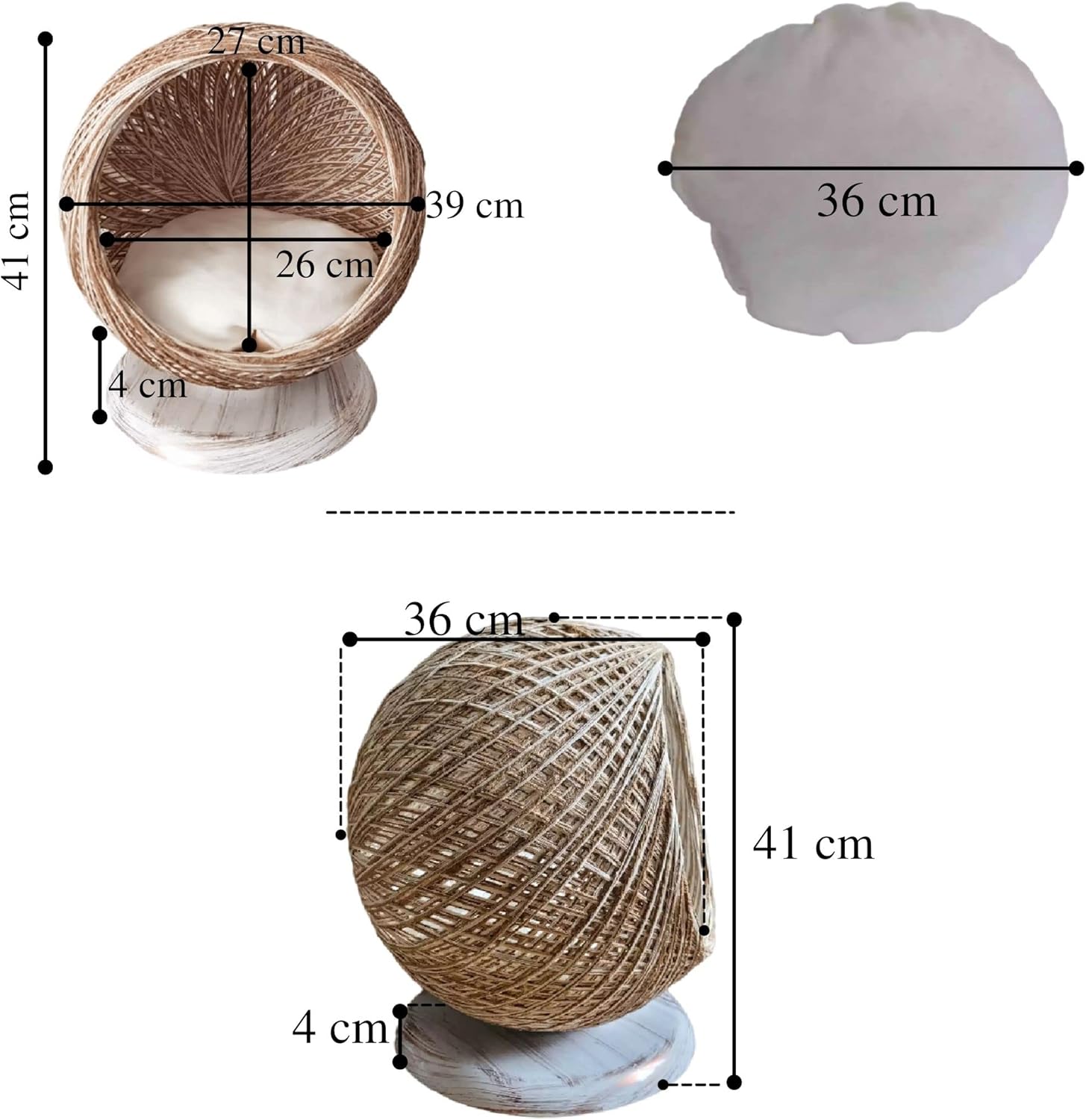 Our pet bed basket is great for your pet and even better for the environment. Jute is a natural sustainable and non toxic fibre that is extracted from the bark of the jute vegetable plant. Jute fibre is one of the strongest fibres in the world, the second most produced natural fibre after cotton.The basket is modelled as a large sphere allowing your pet plenty of space to move, an ideal combination of comfort and durability. The provided cushion allows your pet to be comfortable whilst the jute weave allows enough ventilation to stop your pet overheating. Suitable for any space at home. The sphere shape along with its decorative edging and natural colours make this an attractive and highly functional piece of furniture that will blend into any surrounding.