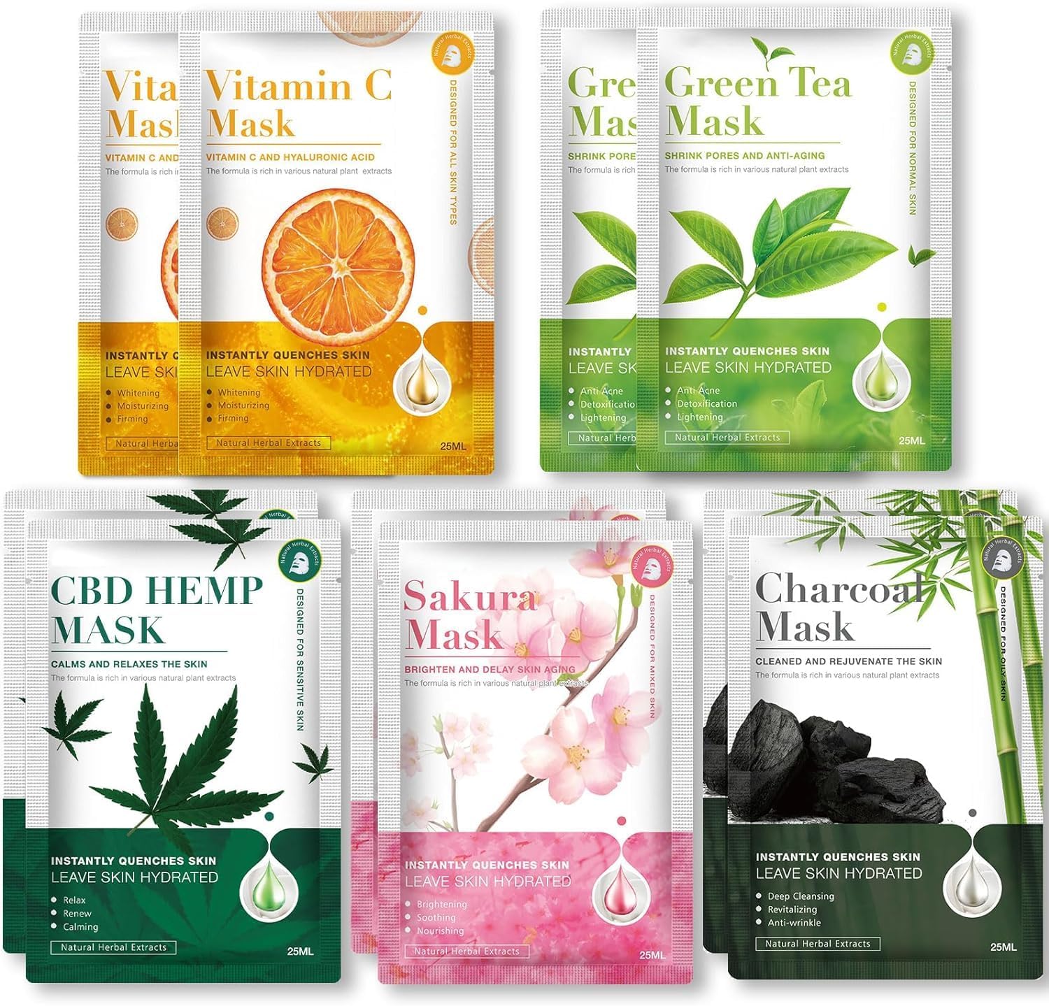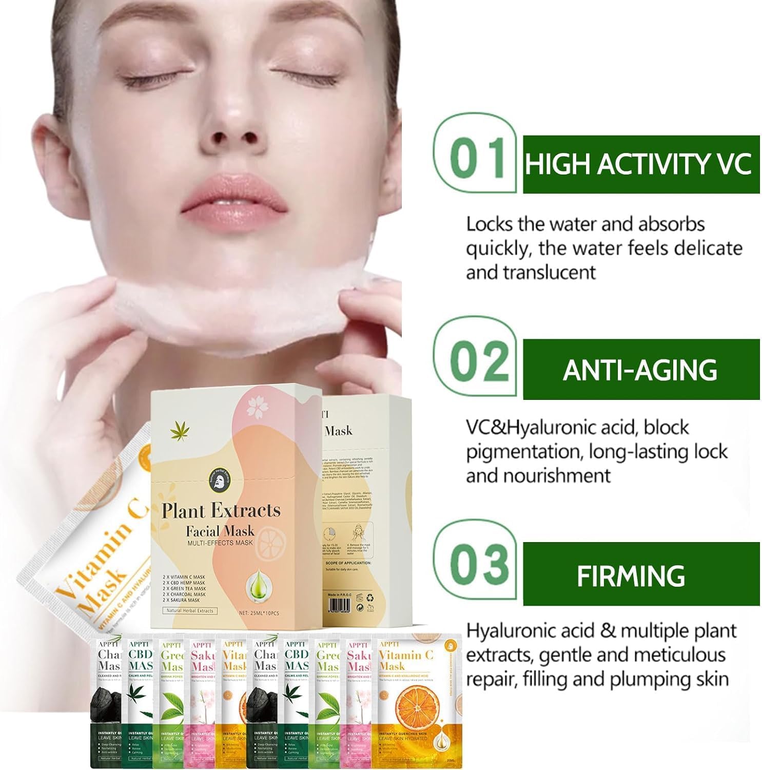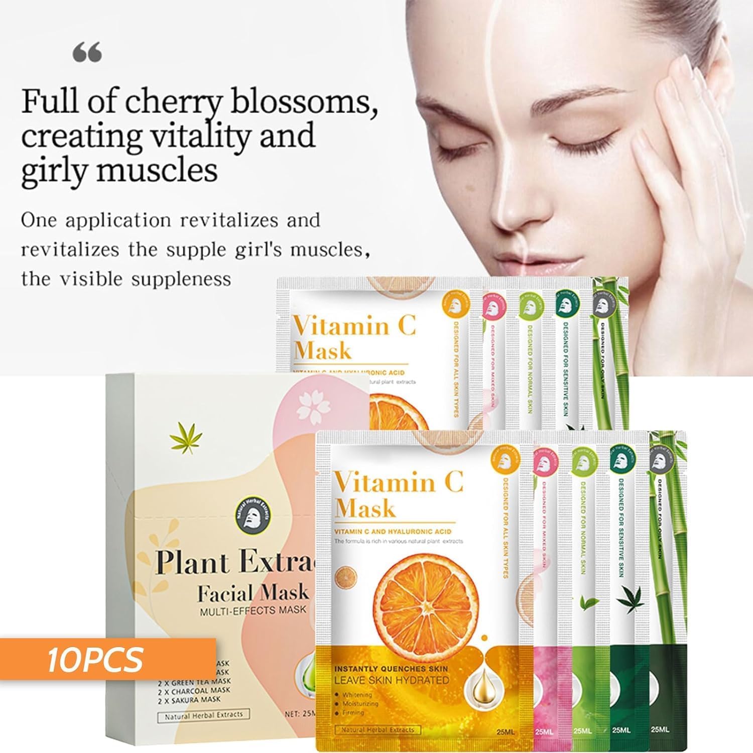 Trendyfave Sheet Mask, 10Pcs Plant Face Masks, Hydrating Face Mask, Face Masks Skincare Deep Cleansing Pores, Anti-aging, Nourishing, Sheet Masks Multipack for All Skin Types