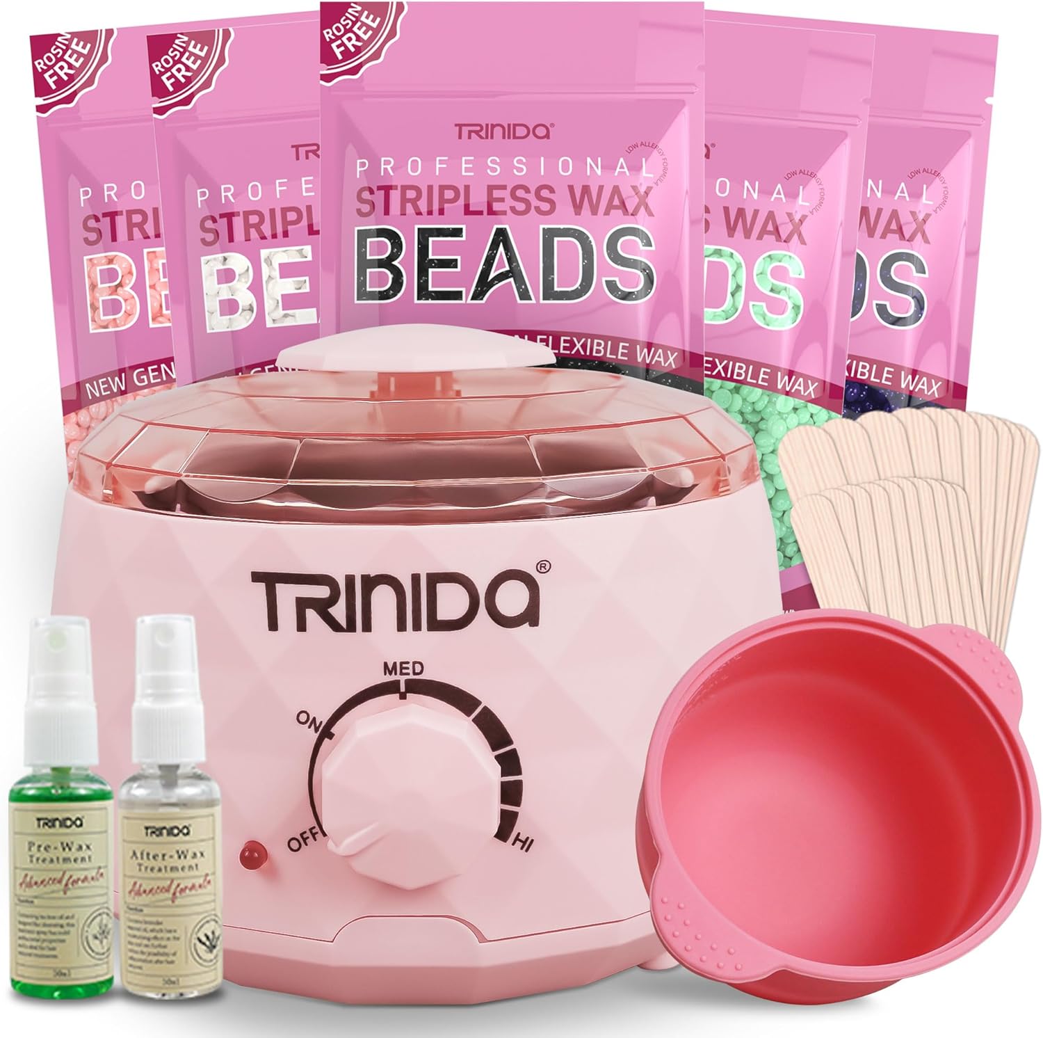 TRINIDa Waxing Kit, Unique Design Wax Machine, Professional Wax Kit with Easy-to-Clean Silicone Wax Pot, Wax Heater with Full Waxing Kit (Pink)