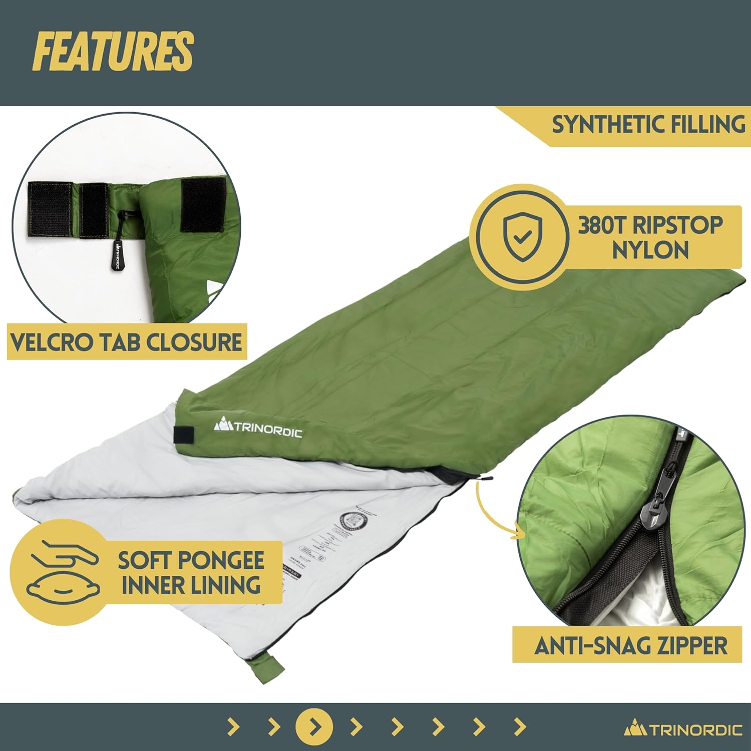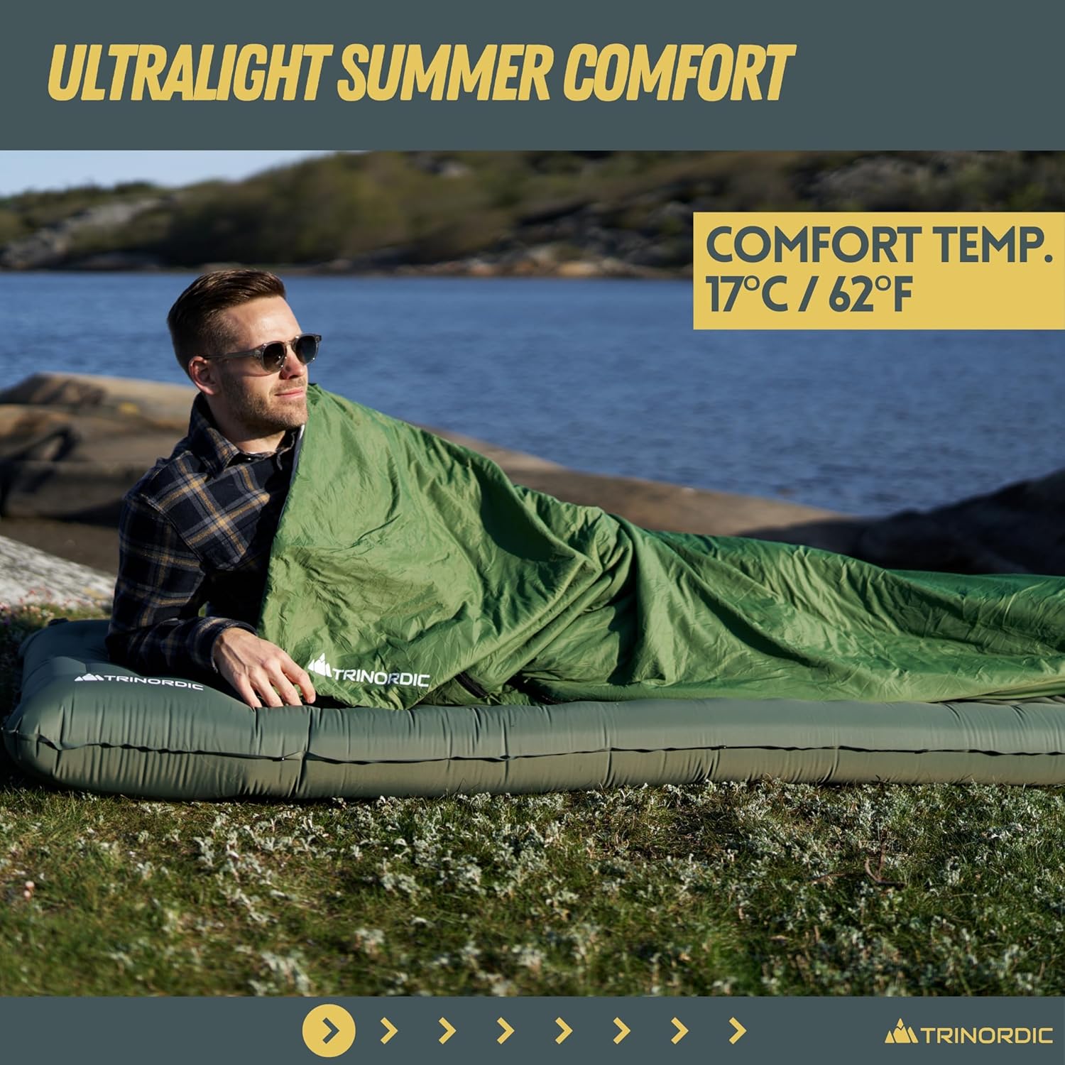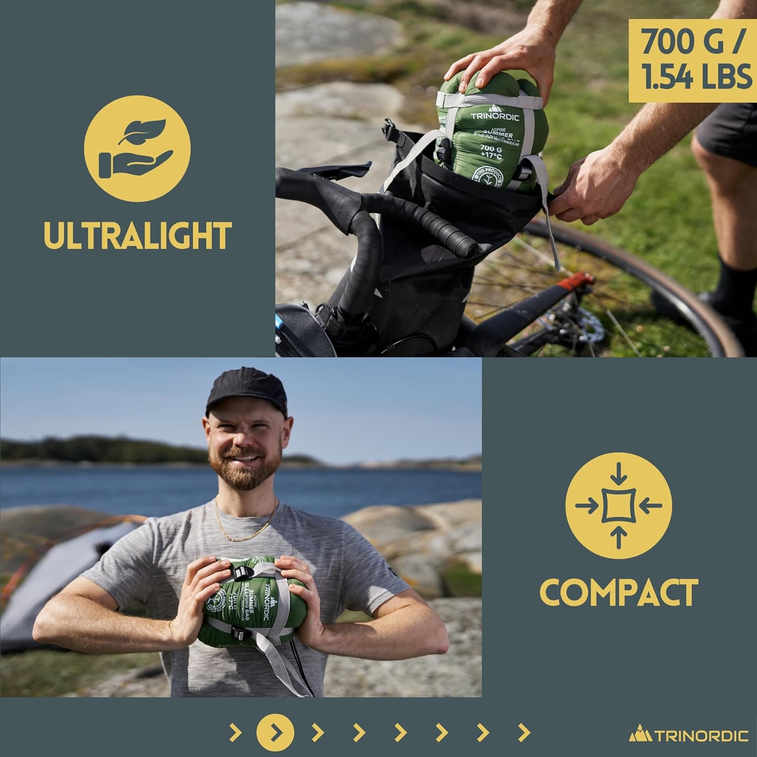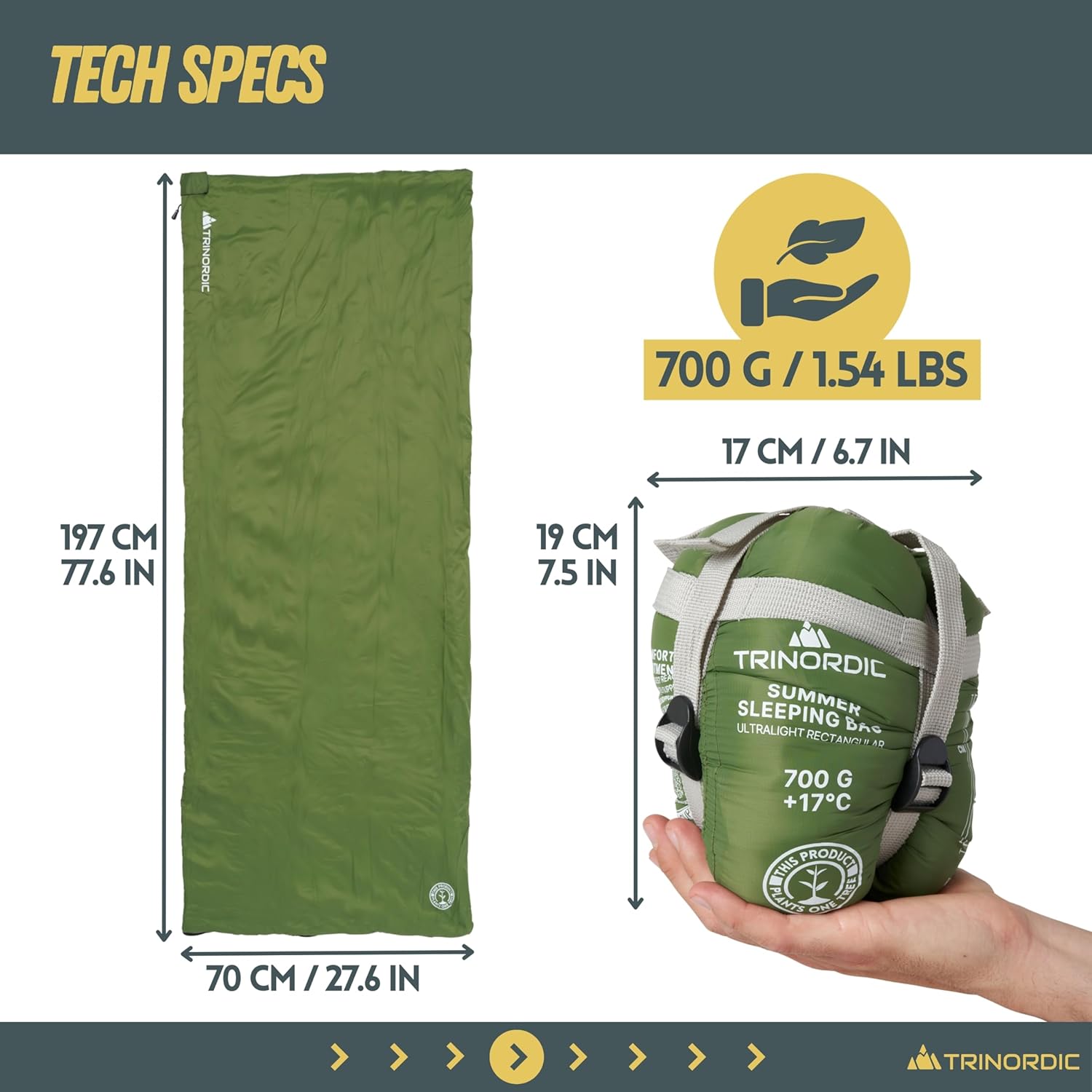 Trinordic Rectangular Ultralight Sleeping Bag – 700g with Anti-Snag Zipper, Compact Summer Sleeping Bags for Adults – Hiking, Backpacking, Bikepacking, and Travel