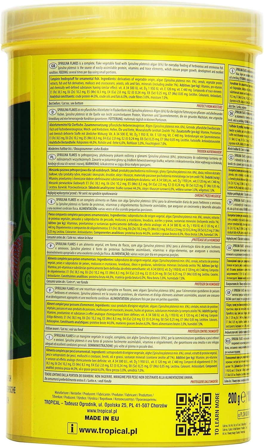 Tropical Spirulina Flakes Vegetable Flake Food With Spirulina, Pack of 1 (1 x 1L)