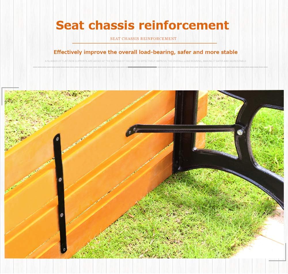 2.park benches for outside: This cast iron is made of strong enough high-quality cast iron and anti-corrosion d wood, which is not only beautiful, but also stable, strong and ; The maximum load-bearing capacity of the gseat is 250KG; The seat surface with protective paint coating can withstand the harsh outdoor weather, waterproof and sunscreen, will not rust or rot! Can be kept on your porch or backyard for several years;