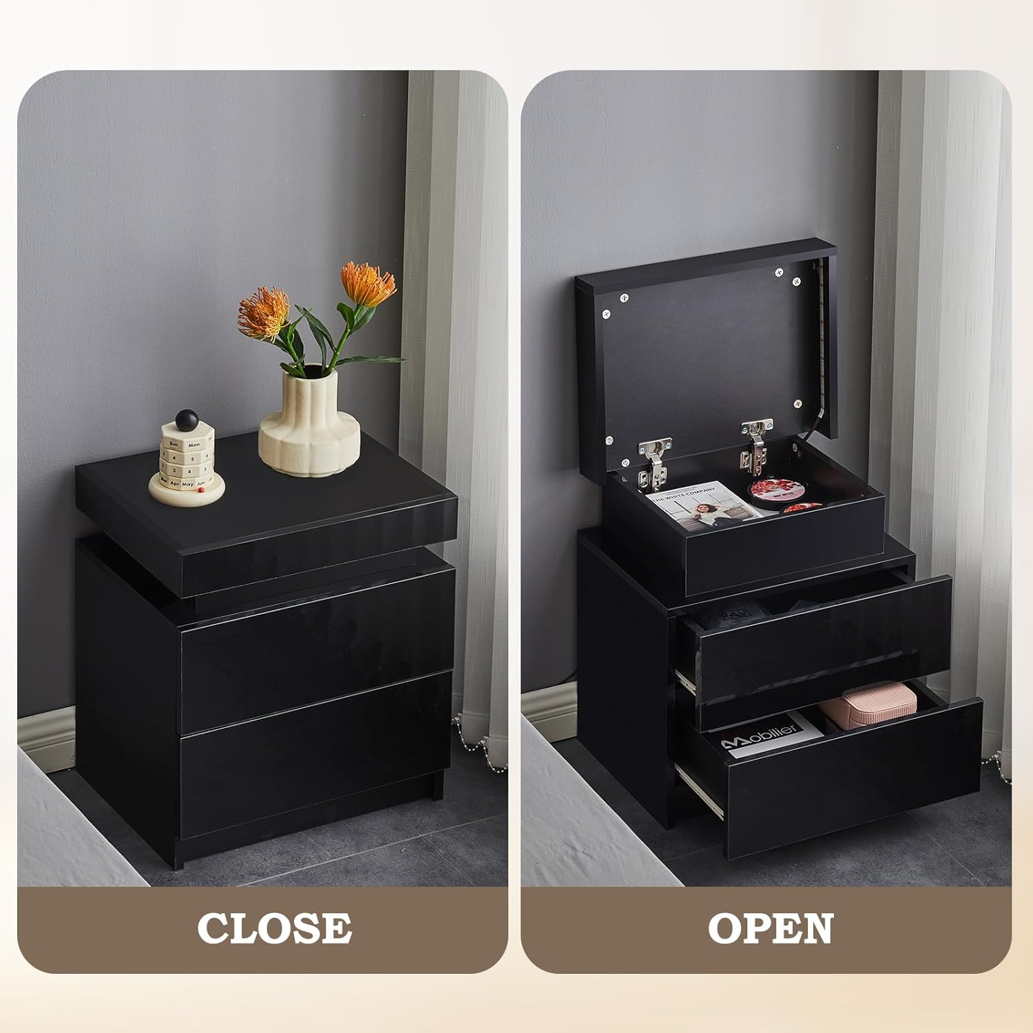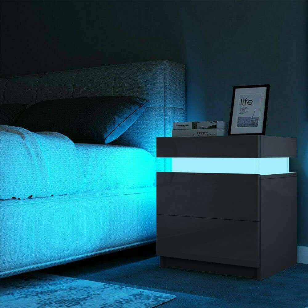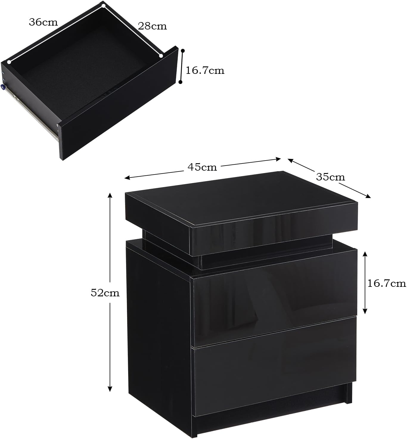 13 reviews for TUKAILAi Set of 2 Black Bedside Table with 2 Drawers Modern Bedside Cabinet Nightstand with LED Lights for Bedroom Living Room Furniture