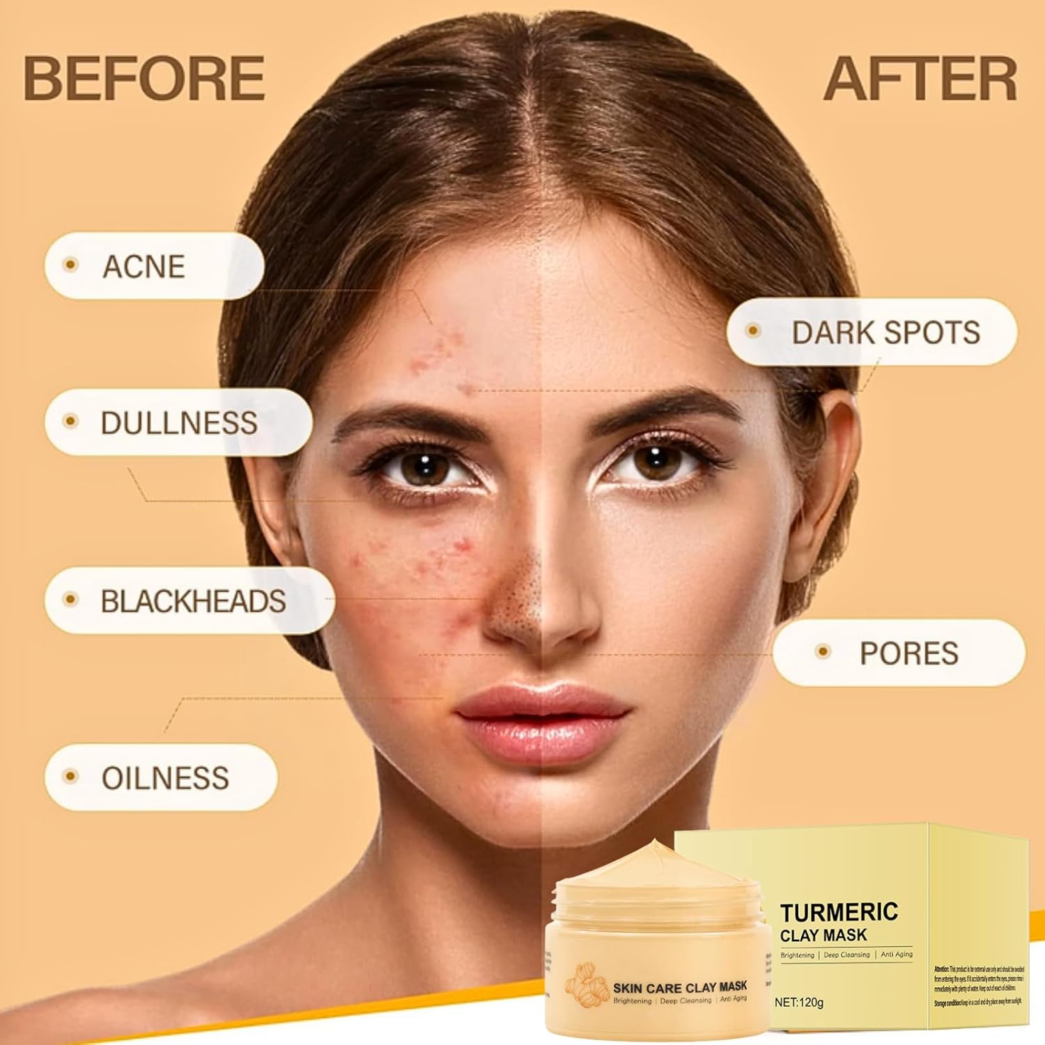 【Improve Acne & Dull Skin】The turmeric clay face mask reduces the appearance of acne scars, nourishes and brightens the skin. The mud mask for face cleans clogged pores of excess oils and dirt, and reduce acne and coarse pore.The clay mask for pores also helps even out skin tone for a more flawless complexion.