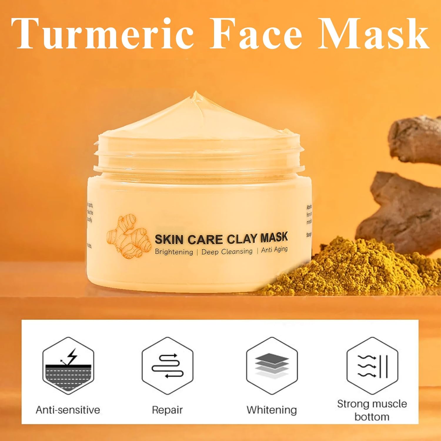 【Deep cleansing】The turmeric face mask can penetrate deep into the pores of the skin, adsorb and remove dirt, excess oil, & dead skin cells from the surface & deep layers of the skin. The vitamin C clay mask effectively reducing blackheads and white heads, making the skin breathe more smoothly.