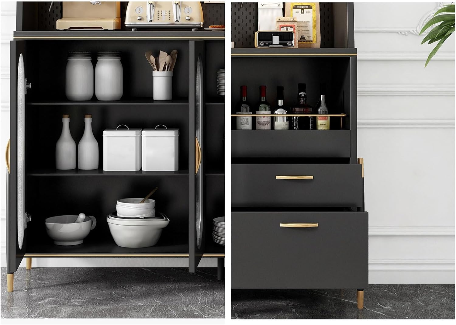 【Multifunctional Buffet Cabinet】Suitable for many occasions, such as kitchen, dining room, foyer, hallway and so on. Not only can it be used as a food prep station, but it can also be used to store drinks and beverages, plus it can display decorations, photos, and more to keep your area clutter-free.