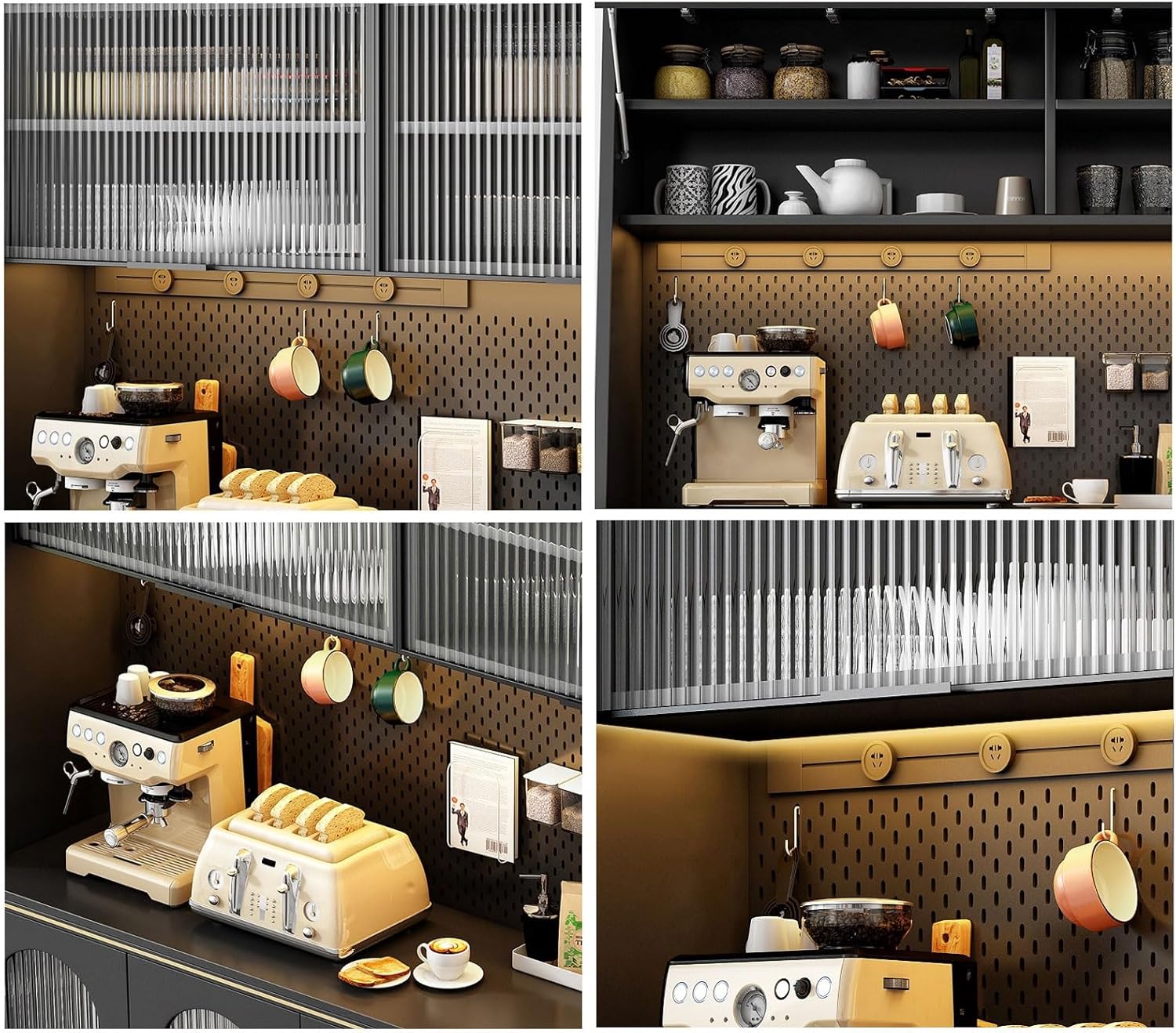 The storage function of this sideboard is also a highlight. It has multiple storage compartments and drawers, which can conveniently store tableware, wine glasses, seasonings and other kitchen supplies. At the same time, the top of the sideboard can also be used as a small bar, so you can easily take wine glasses or seasonings while dining.