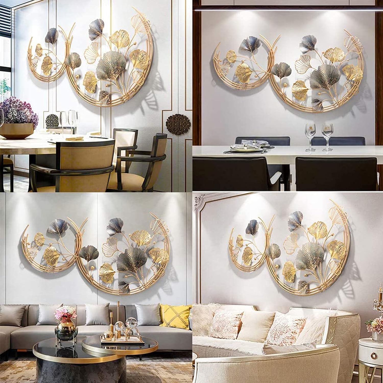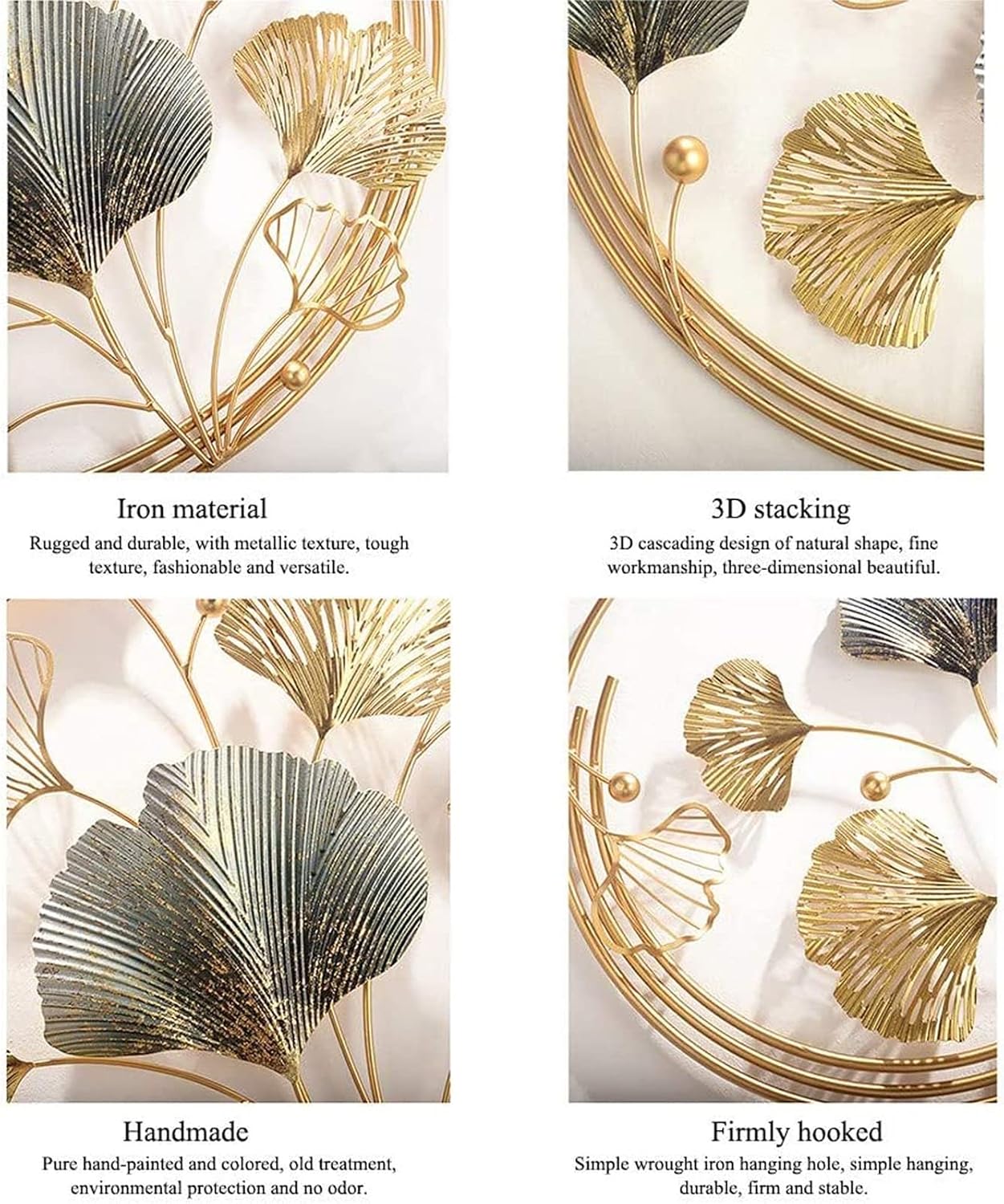 TWY Home Decor Metal Wall Art, Gold Ginkgo Leaves 3D Wall Hanging Creative Handmade Wall Sculpture Modern Artwork Decoration for Living Room, Bedroom