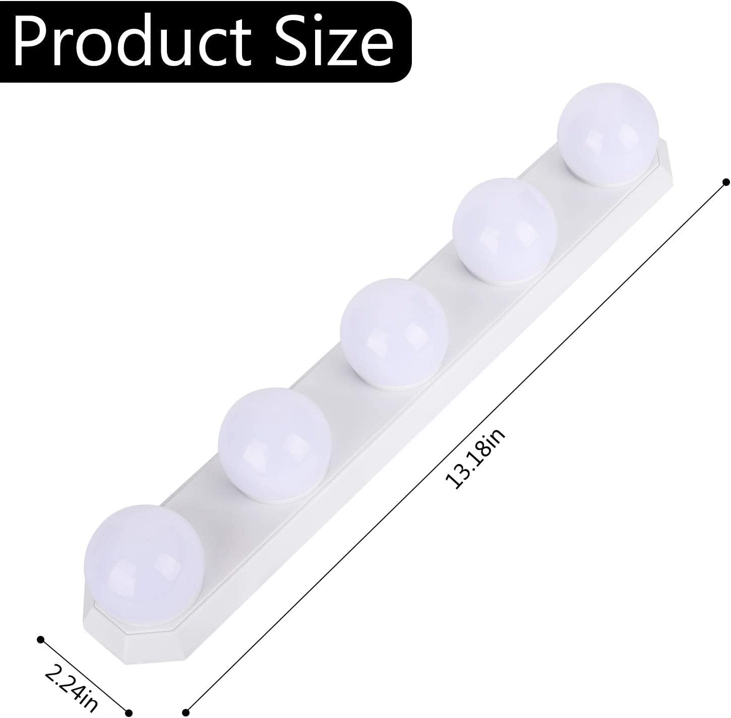 Length Adjustable: The 5 pieces makeup light bulbs perfectly match most mirrors, you can adjust the length freely, the extra wires can be wrapped around the makeup light base and hidden it to make your lighted makeup mirror present a beautiful and neat appearance, no need to cut off at all.