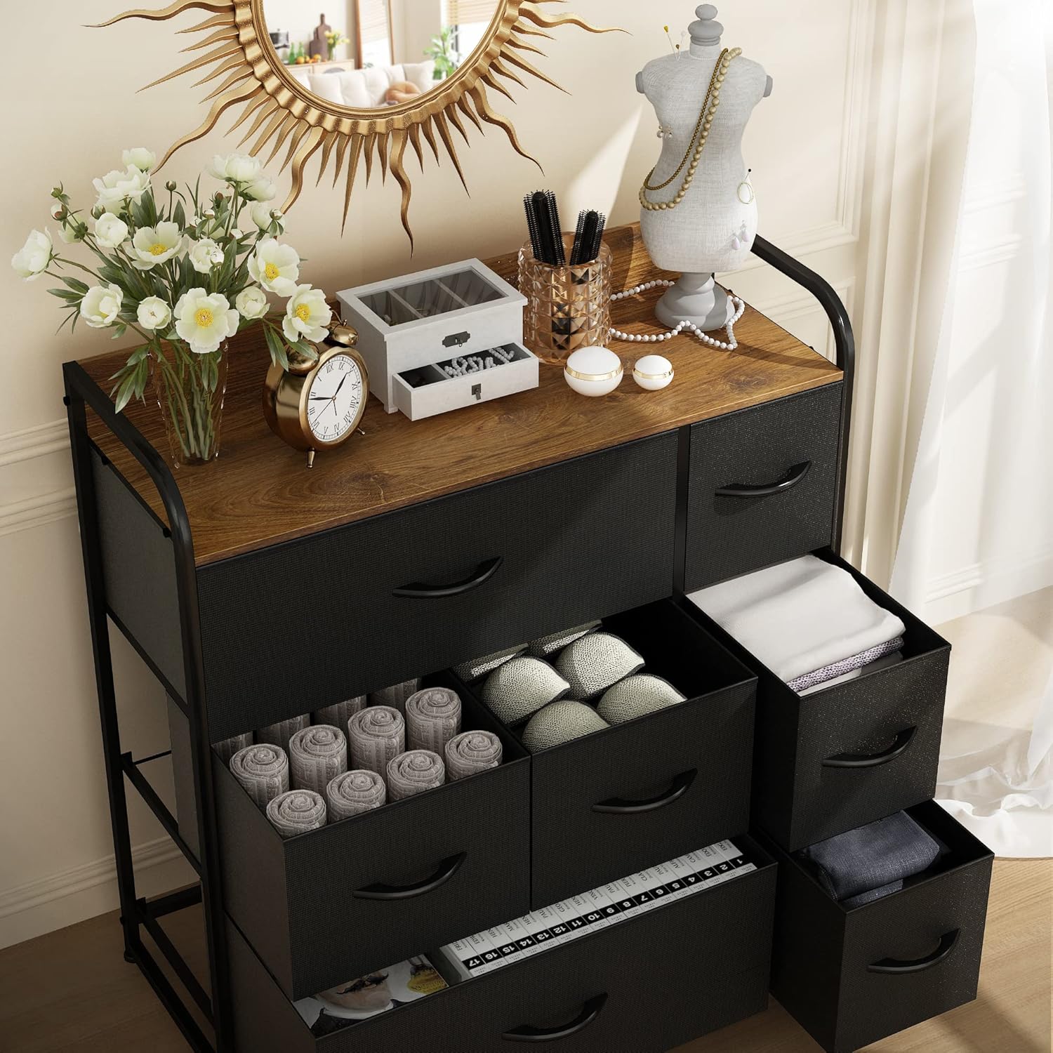 uiano Chest of Drawers with 7 Drawers,Cationic Fabric Storage Organizer Unit for Bedroom, Easy Pull Fabric Bins & Wooden Top & Large Storage Space, Fabric Dresser for Living Room,Hallway, Closets