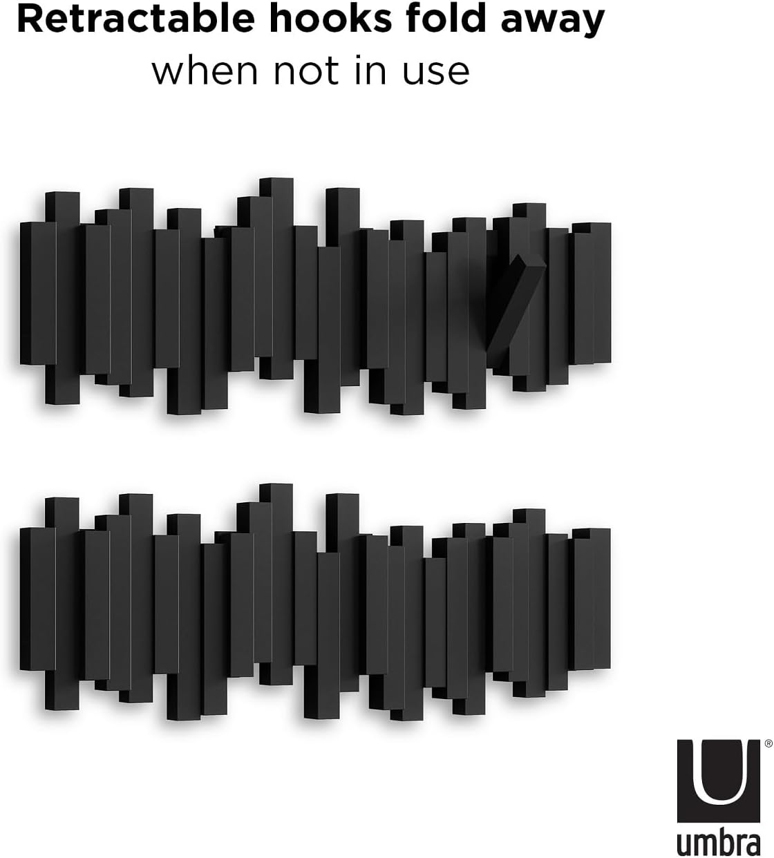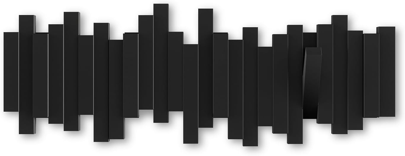 Umbra Sticks Multi Hook Coat Rack – Modern, Unique, Space-Saving Wall Mounted Hanger with 5 Flip-Down Hooks for Hanging Coats, Scarves, Purses and More, Black, 7.25 in*19.5 in*1.25 in