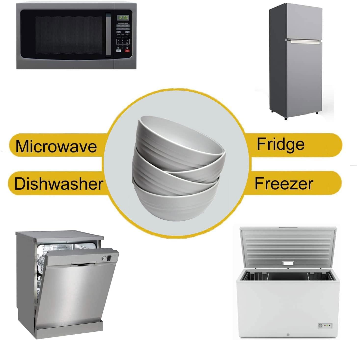 Unbreakable Cereal Bowls, Large Plastic Bowls Set of 4, EU Tested. Lightweight, Dishwasher and Microwave Safe, Ideal for Cereal, Salad, Noddle and Parties (Grey, Single)