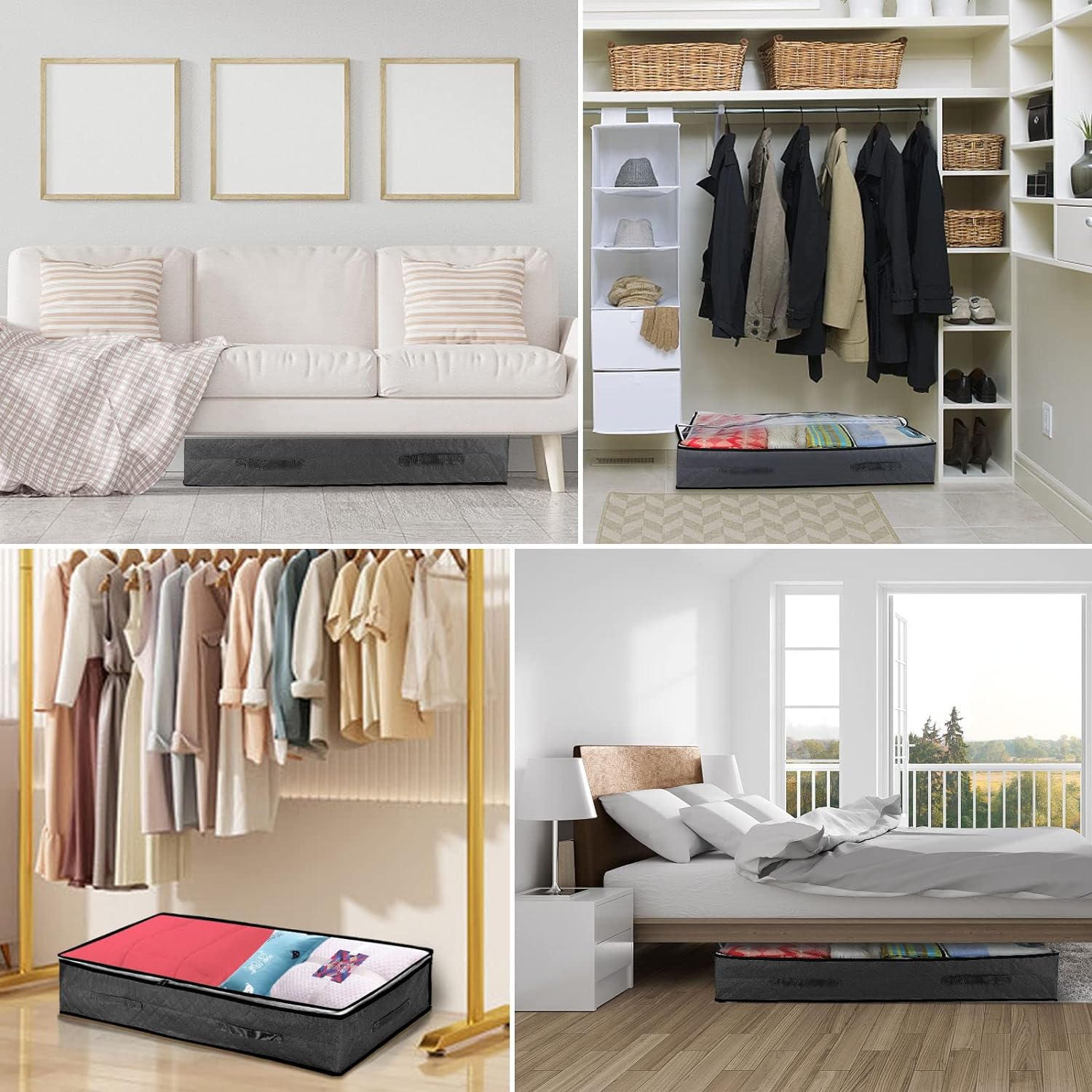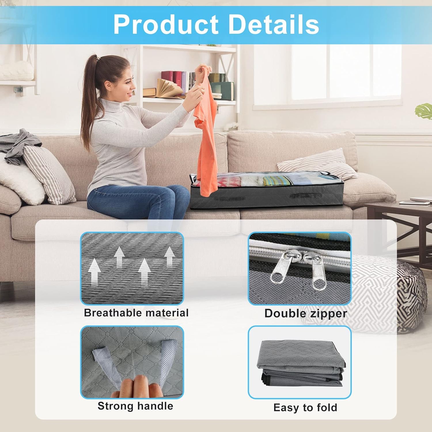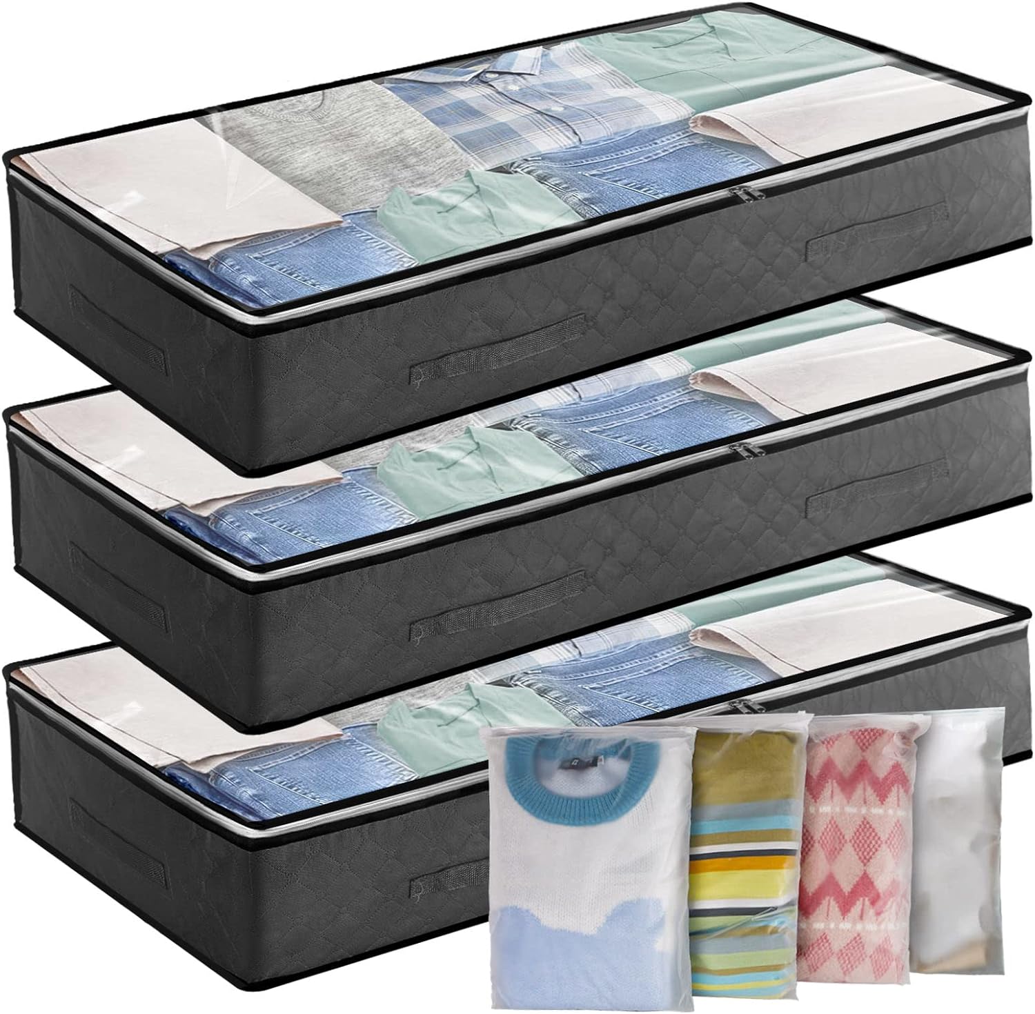 Underbed Storage Bag 3Pack 90L Large Under Bed Storage Box with 4 x Large Zip lock Bags with PVC Window for Clothes, Duvets, Comforters, Blankets, Bedding, Quilts