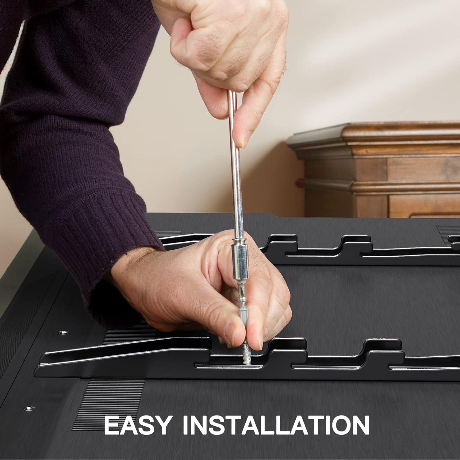SUPER SIMPLE TO INSTALL & MOVE : This table top TV stand comes with an easy to use instruction and all necessary accessories for quick and easy installation within 10 minutes.Unnecessary to put holes in the wall to mount and conveniently move to fit where it needed to go!