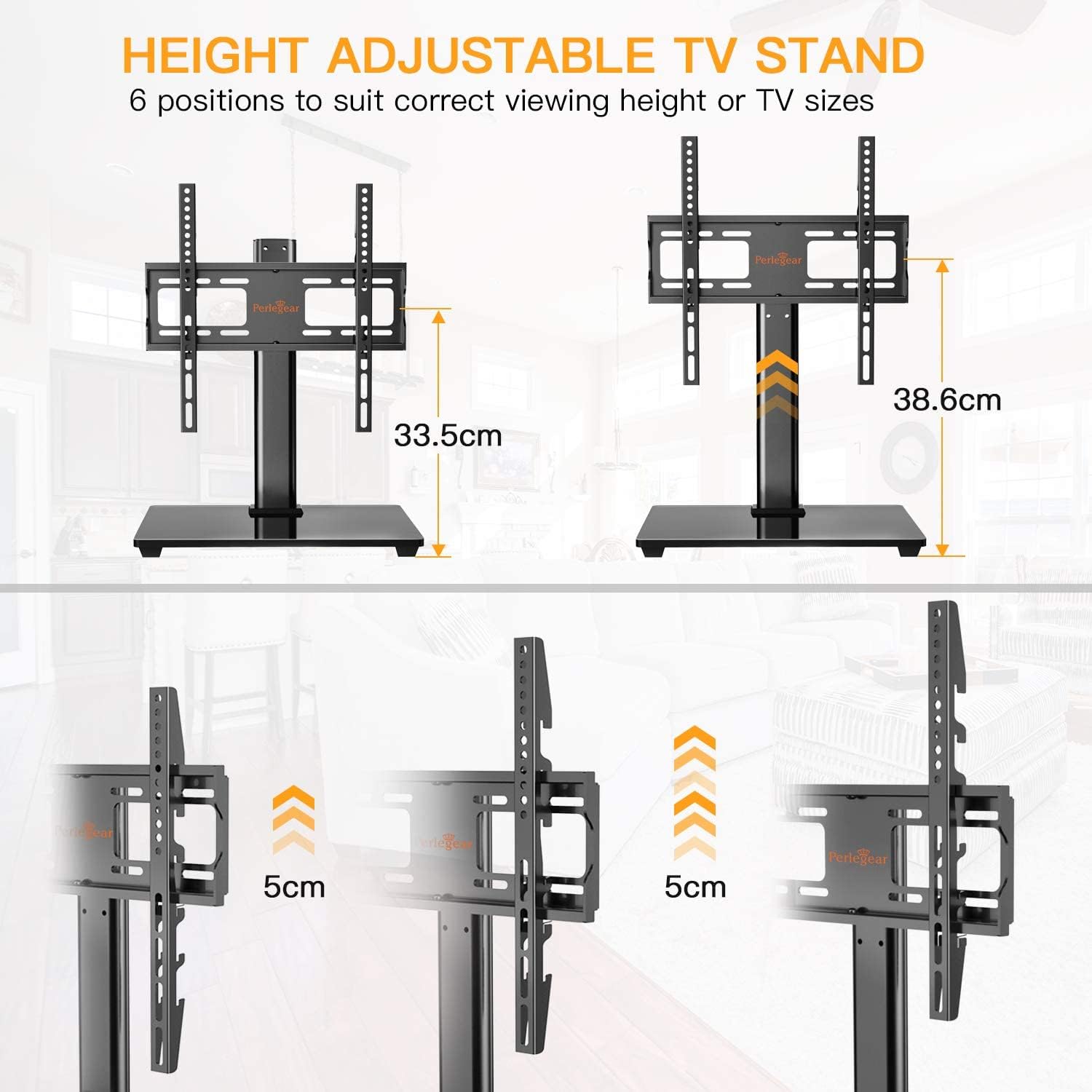 Height Adjustable Table Top TV Stand, TV Base Stand with Tempered Glass Base, up to 40kg Max VESA 400x400mm