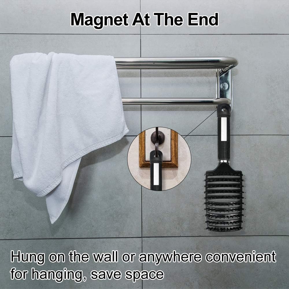 UNIQUE DESIGN– The ventilation hole design helps to dissipate heat, reduce drying time and prevent the blower from causing thermal damage. The handle with hanging holes, which can be easily hung on a hook or shelf. At the same time, the end of the handle is designed with magnetic attraction, and the comb can also be hung on a metal object by magnetic force.