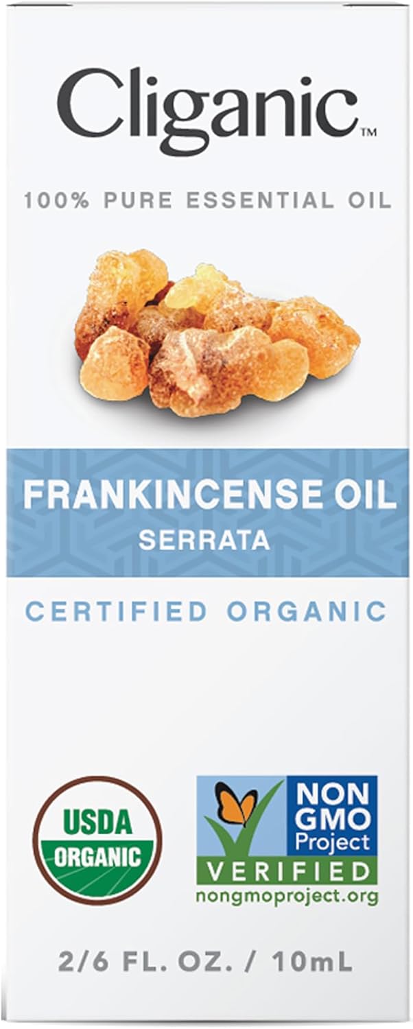 USDA Organic Frankincense Essential Oil, 10ml – 100% Pure Natural Undiluted, Therapeutic Grade for Aromatherapy | Premium Certified Organic | Cliganic 90 Days Warranty