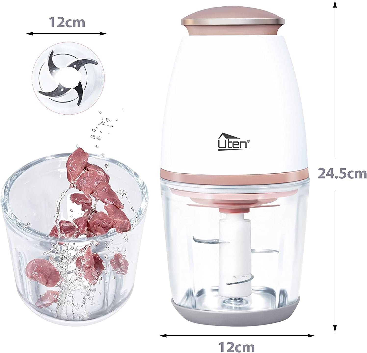 Uten Mini Chopper Electric Food Processor, 700ml Meat Grinder, Mini Chopper for Meat, Vegetables and Fruits, One Touch Operation Blenders for Kitchen, 4 Sharp Blades, 300 W