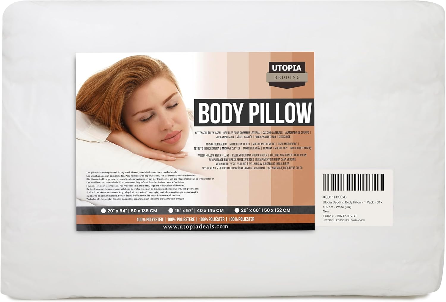 Utopia Bedding Bolster Pillow (Double, 4Ft 6 Inch), Full Body Pillow, Soft Hollowfiber Filling, Long Pregnancy Pillow for Maternity Support and Side Sleeper (White)