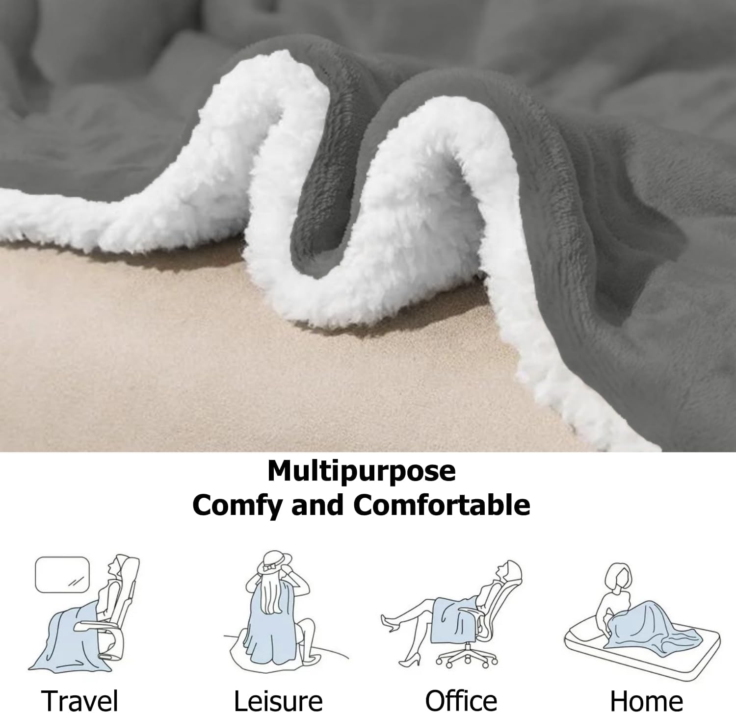SIZES AND COLORS: The blanket measures 50” x 60” (127cm x 152cm), providing ample coverage to keep you warm and relaxed. Available in a cozy and elegant grey color, it strikes a perfect balance between warmth and lightness, ready to embrace you with its softness anytime.