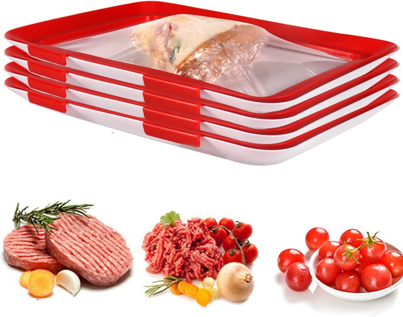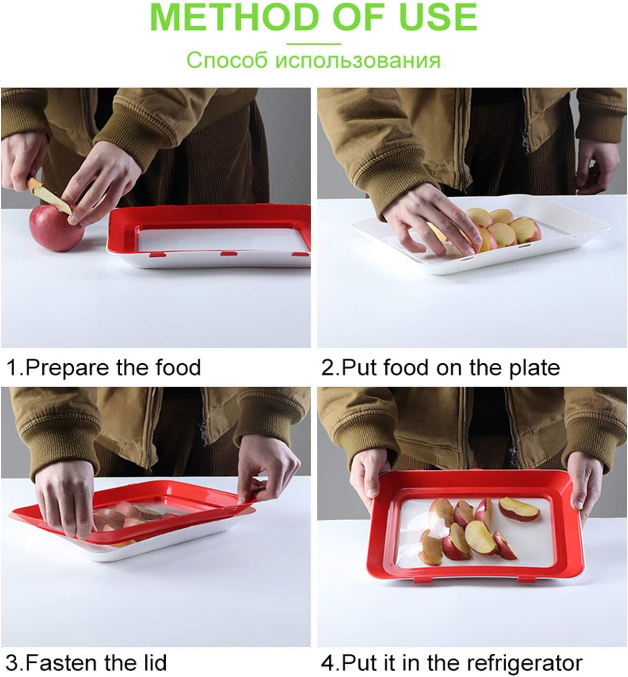 【KEEP FOOD FRESH】 : This food preservation tray keeps food fresh & 100% bacteria-free by applying advanced food preservation film technology and creative buckle design.