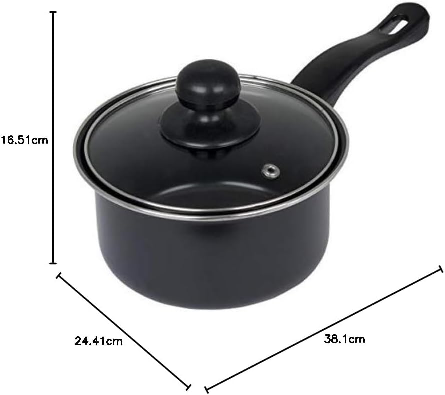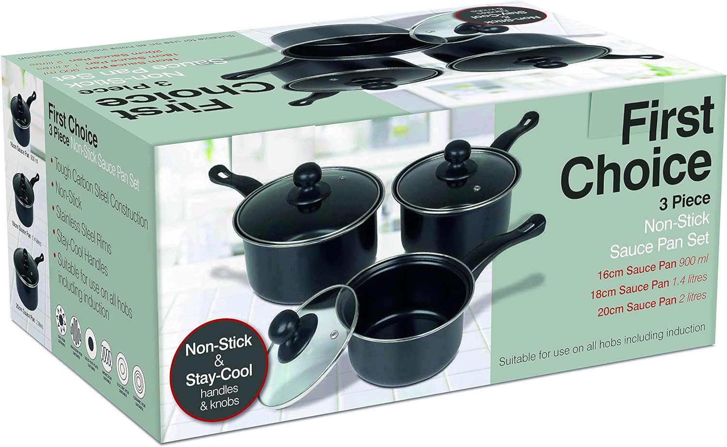 16cm , 18cm, 20cm non stick sauce pan set with Heat resistant handles and toughened glass lids.
