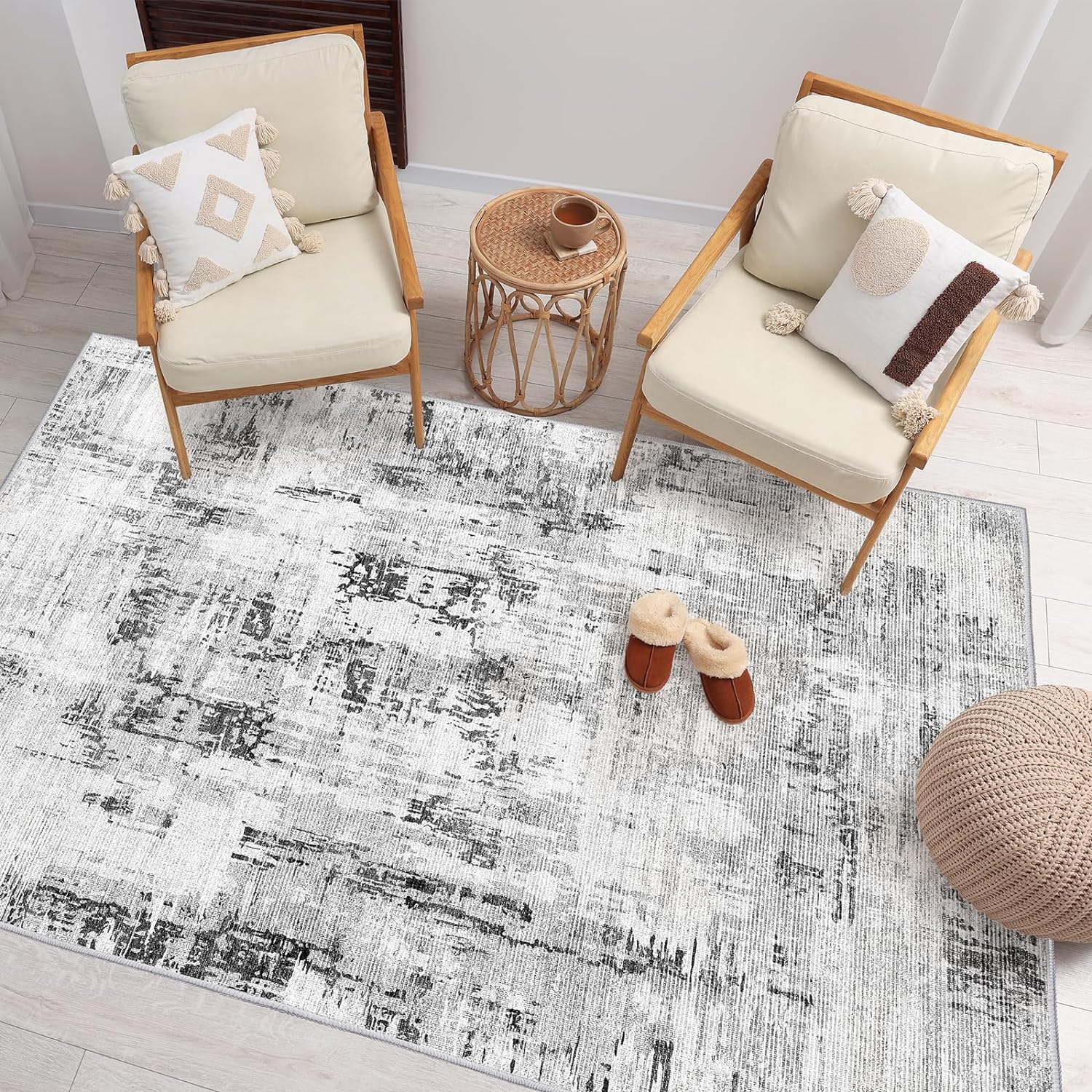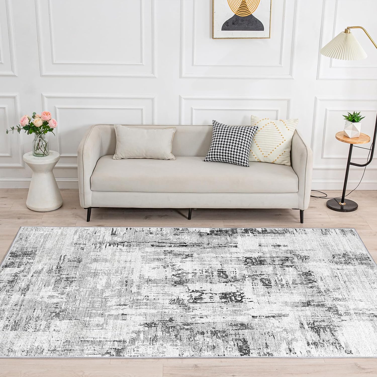 Vamcheer Machine Washable Rugs for Living Room – Modern Soft Faux Short Pile Area Rugs for Bedroom Dining Room Abstract Carpet for Office Non Slip Non Shedding Large Grey Rug, 160x230CM