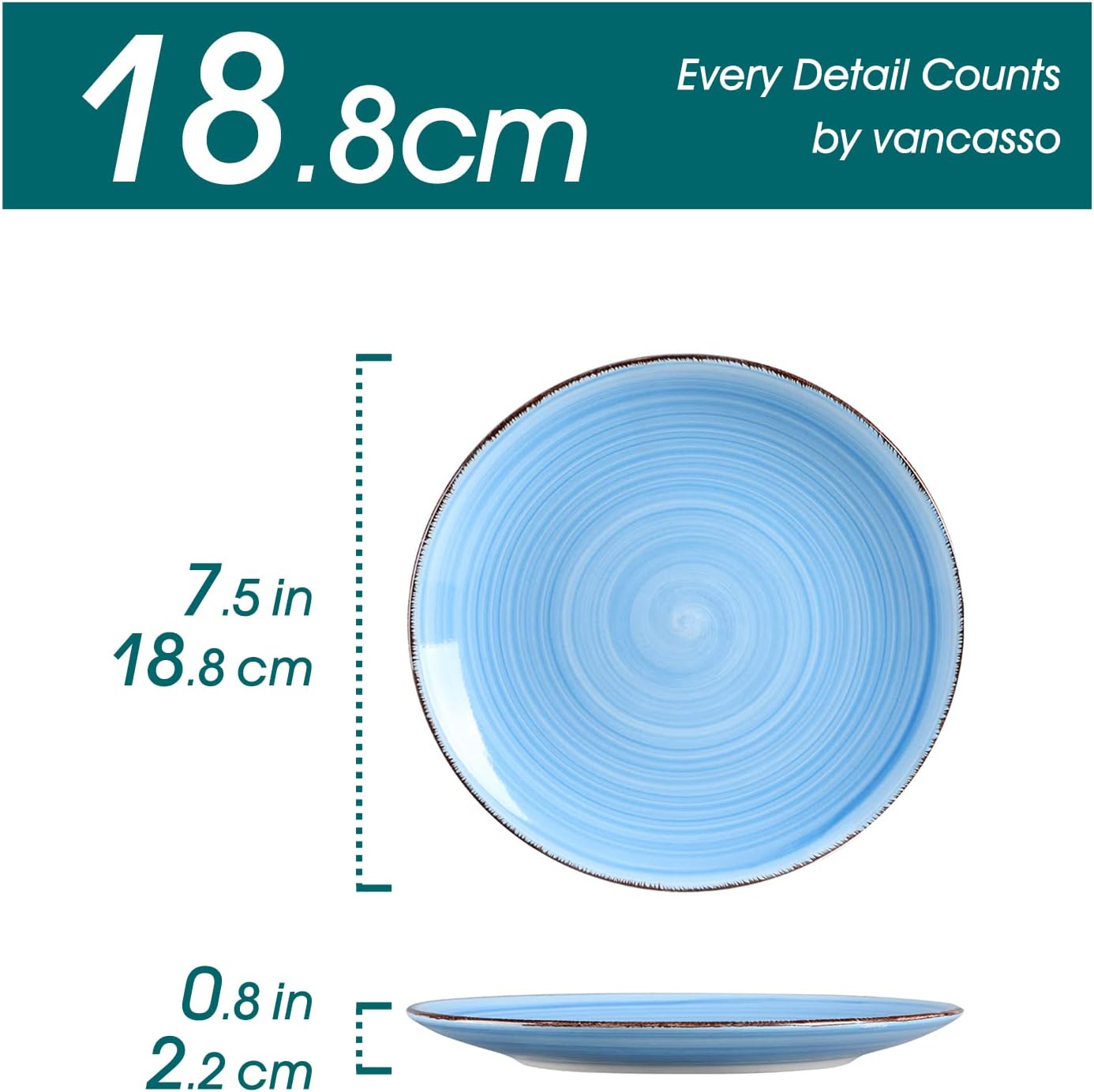 Be the first to review “vancasso Bonita Blue Dessert Plate Set of 6, Handpainted Side Plate in Rustic Look Tableware, 7.5 inch Side/Salad/Fruit/Snack Plate(19 * 19 * 2.2cm)”