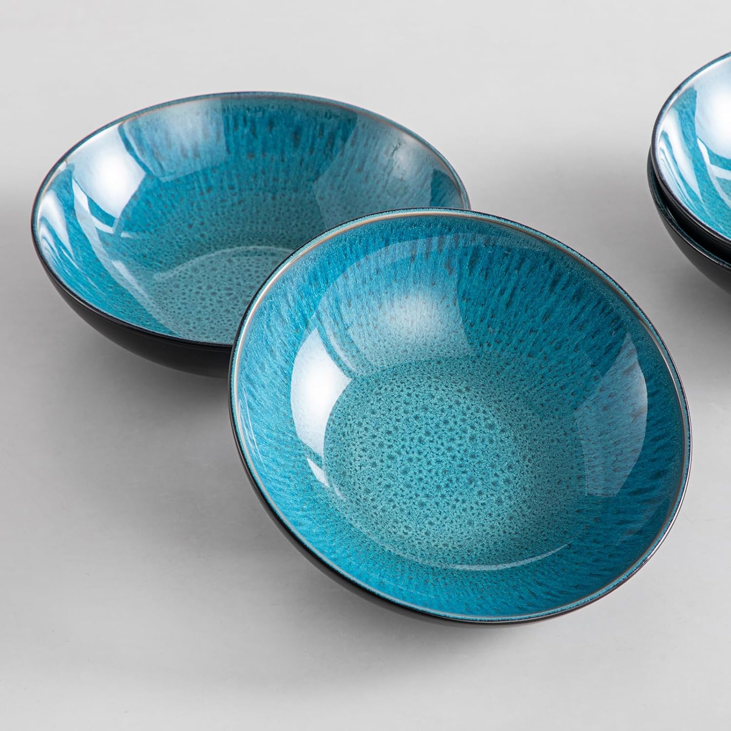 【Unique and Beautiful Glaze】✅Reactive glaze inside, matte glaze outside, the unusual glazed craftmanship contrast with the mottled green, make your table glamorous and add a touch of style to your dishes. ✅The glaze is smooth and glossy, each piece is slightly different from others, full of artistic beauty.✅Add plump black rim design which enrich the vision appeal and harmony.