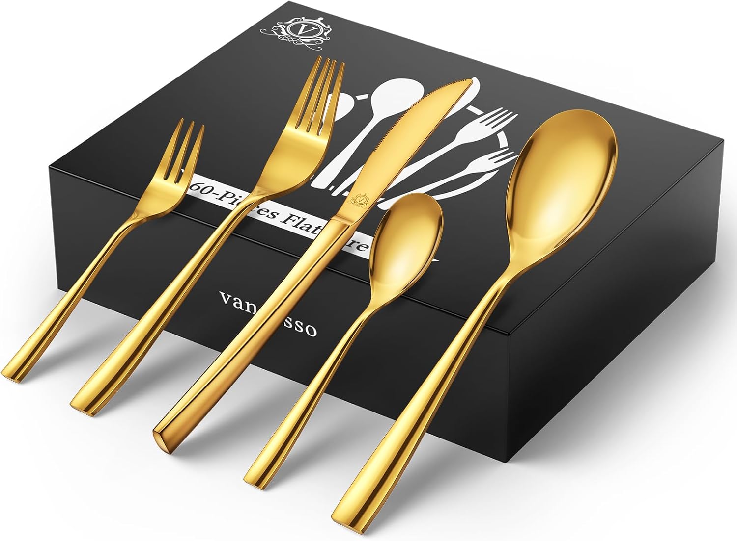 Be the first to review “vancasso Cutlery Set, Gold Cutlery Set for 12 People, 60 Piece Tableware Cutlery Set for Home Restaurant Party, Cutlery Include Dinner Forks/Spoons/Knives, Square Edge & Mirror Polished”