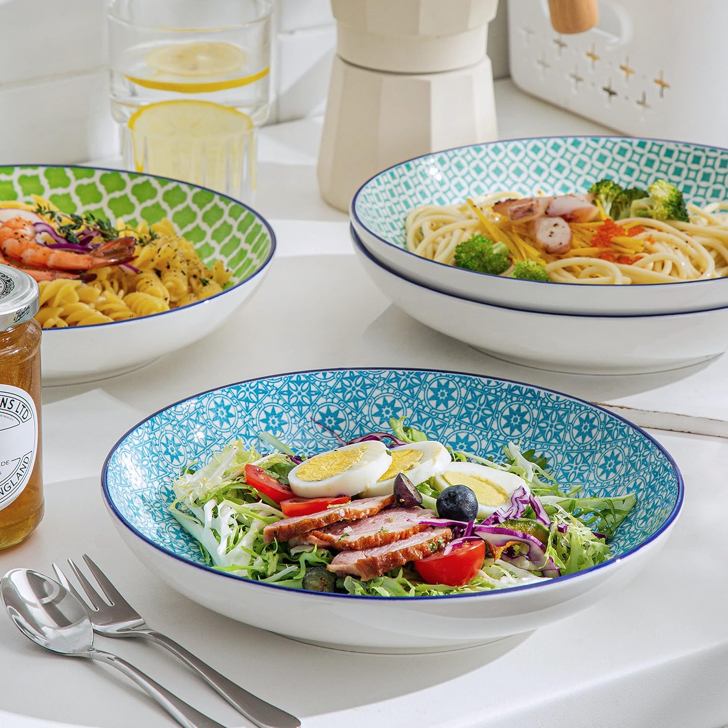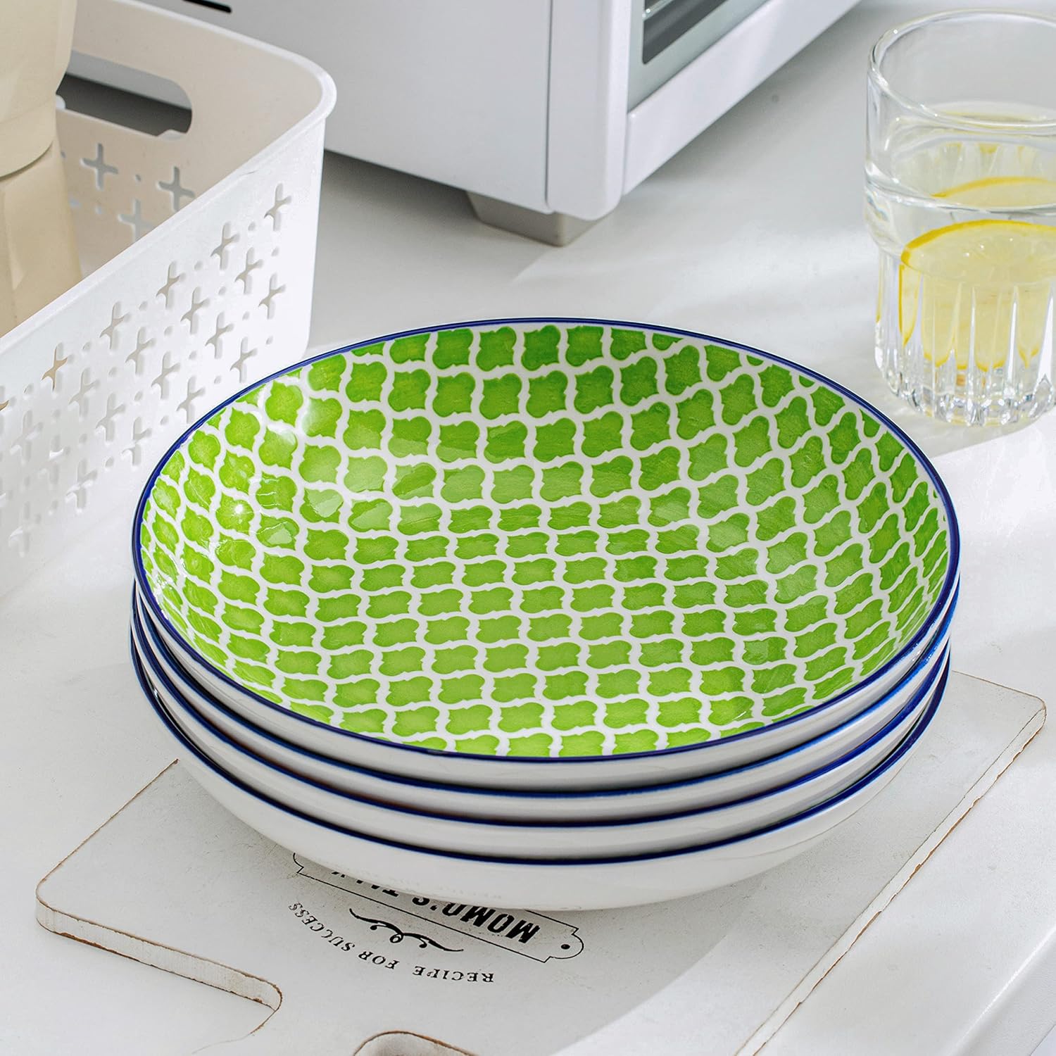 vancasso Macaron Pasta Bowl Set of 4, Porcelain Salad Bowl, 34 Ounce Soup Bowl and Large Serving Bowl, Japanese Style (8.9in Diameter x 1.75in High)