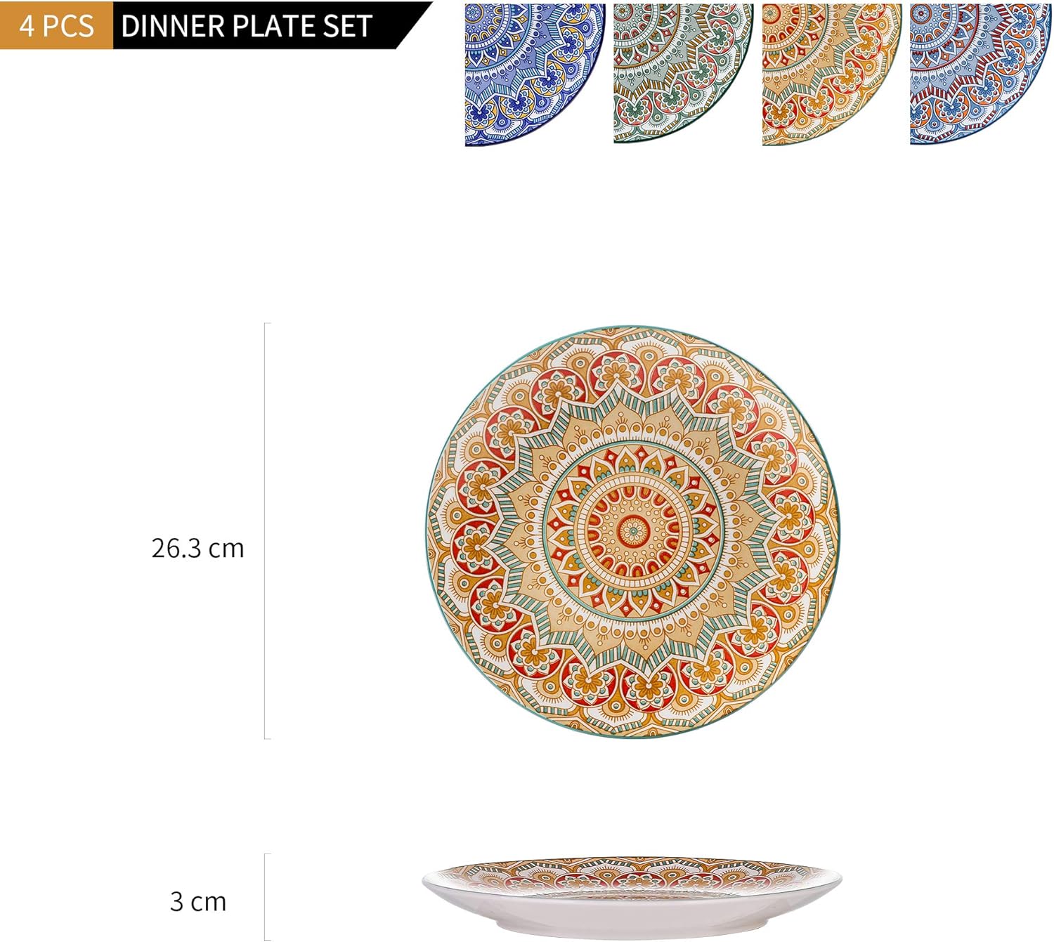 vancasso Mandala Patterned 4-Piece Dinner Plate, Yellow Crockery Bohemian Style Porcelain Tableware, 10.5 inch Dinner/Salad/Fruit/Snack Plate(26.3 * 26.3 * 3cm)