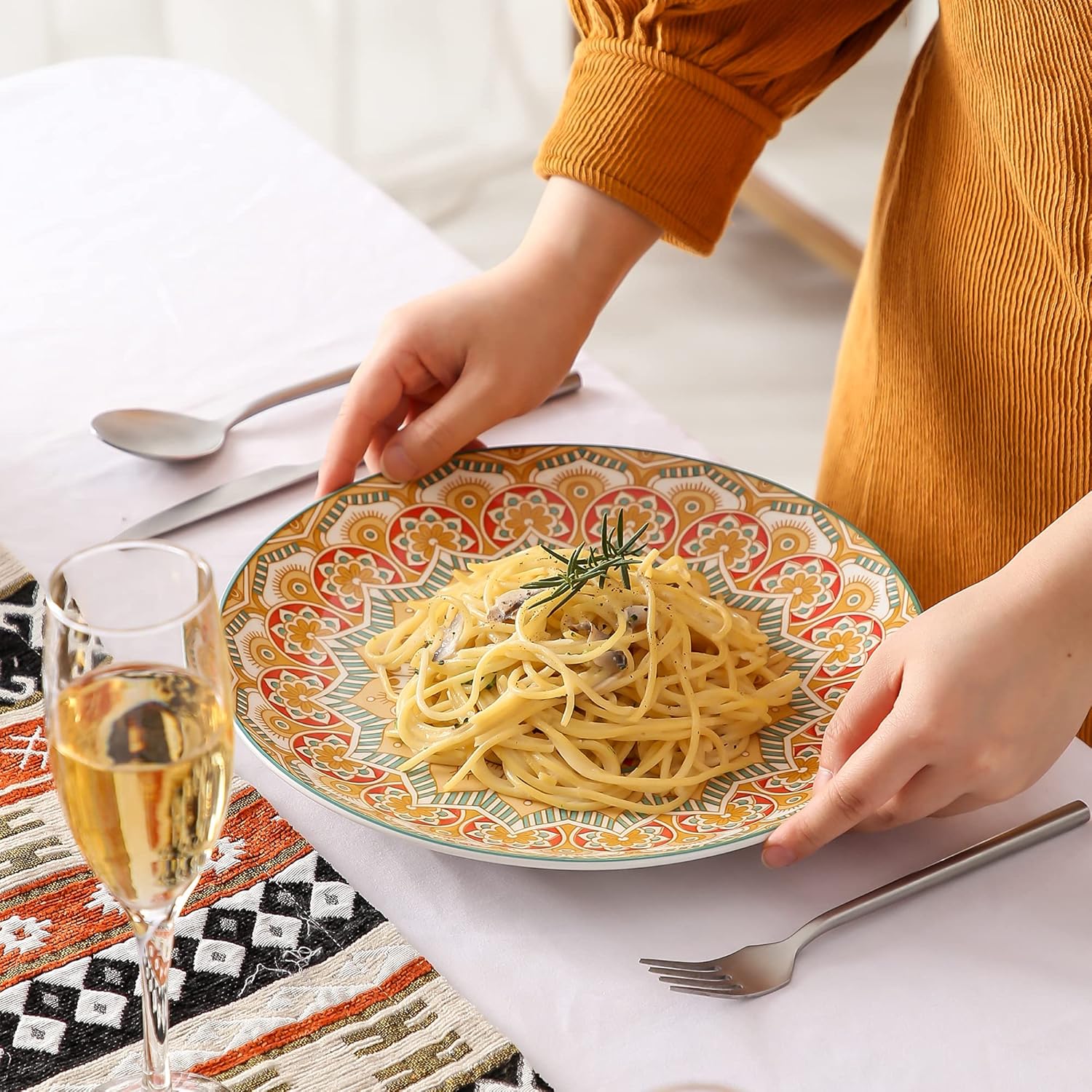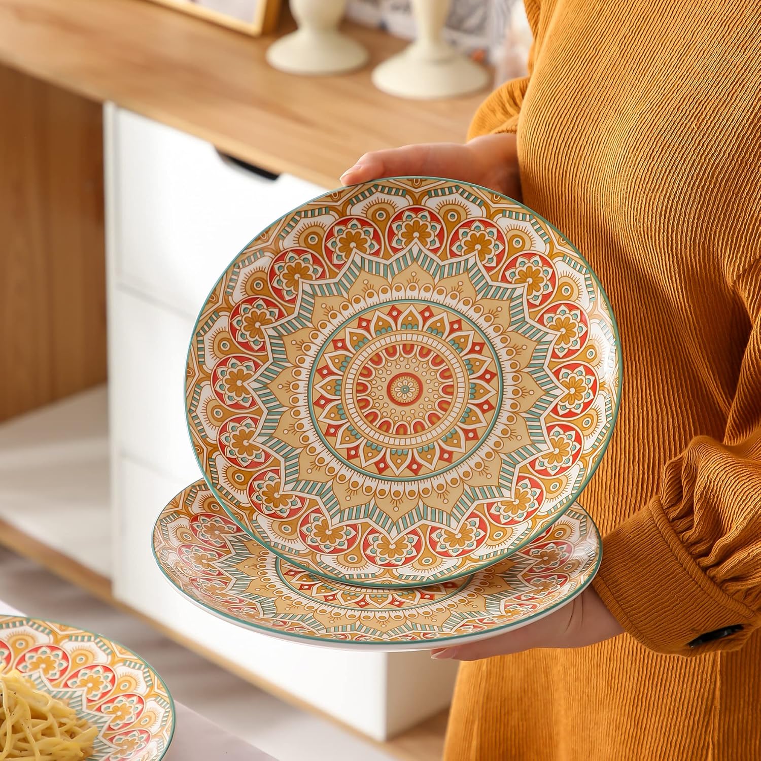 The magic mandala, let you meet a more beautiful self. The dinnerware collection was inspired by traditional hand-painted pottery, crafted by brilliant colors and intricate motifs, with glorious designs, makes every meal a festive occasion. This set was thoughtfully selected to set an amazing bohemian table and enough to serve everything!