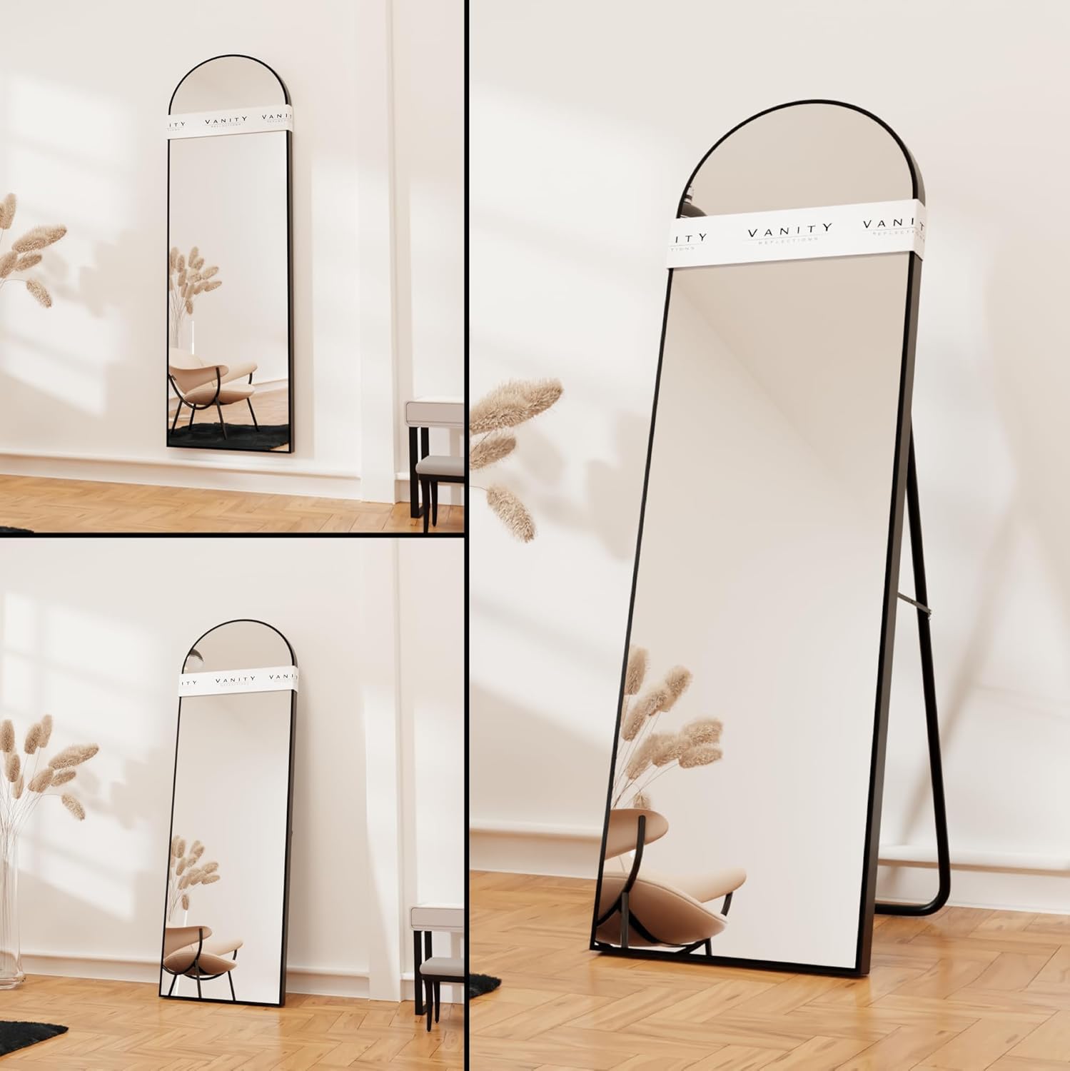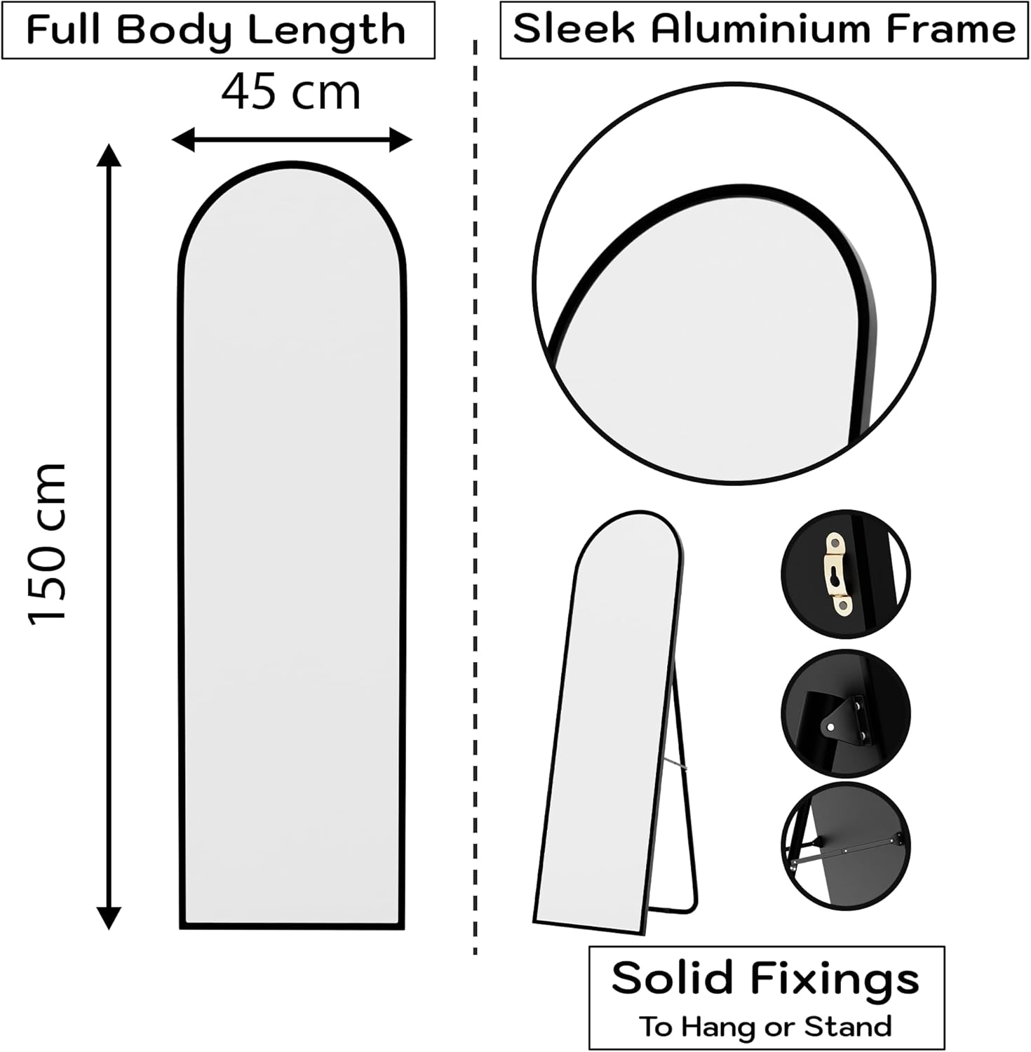 Vanity Reflections – Full Length Wall Mirror, 150 x 45 cm Leaning Hanging or Floor Standing Mirror Full Length, Arched Mirror Full Length, Large Floor Mirror Full Length for All Rooms (Black)