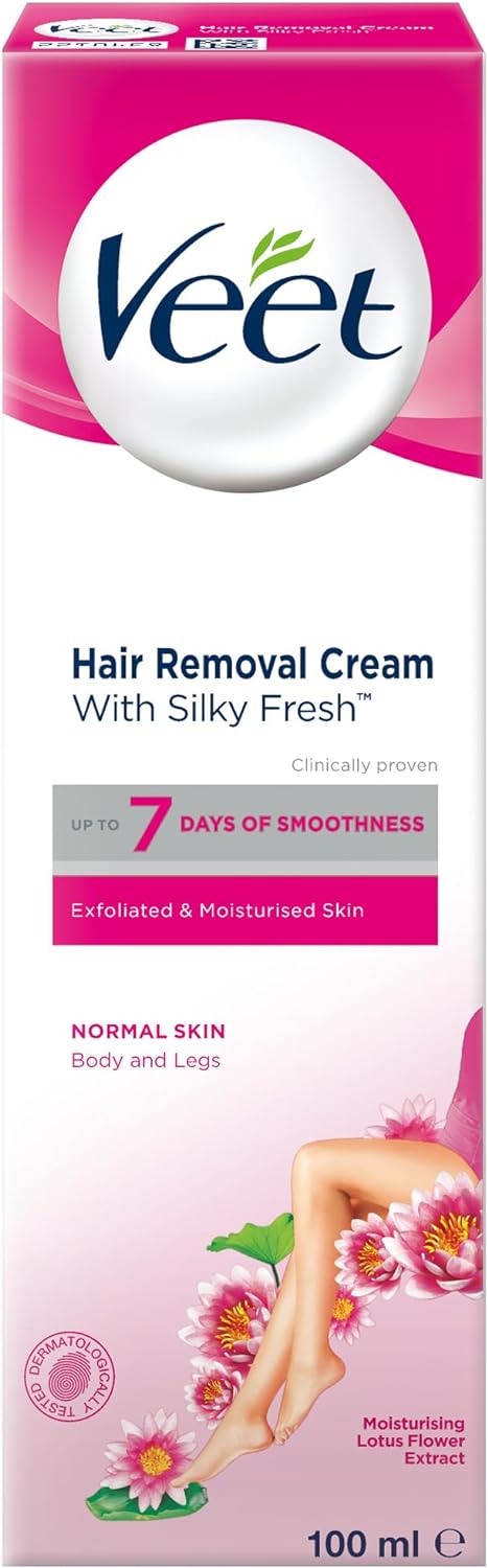 Veet Normal Skin Hair Removal Cream. Veet Normal Skin. Touchably smooth skin in just 3 to 5 minutes. 3 minutes to a sexy, smooth you Girls, don’t get caught out with stubbly, hairy legs – Veet’s 3-minute hair removal cream is all it takes to banish the fuzz in a flash! Veet’s cream dissolves rather than cuts hair, so unwanted hair takes longer to grow back than with shaving and there’s no stubbly feel to regrowth. Veet’s gentle formulas leave your skin silky smooth, sexy, and ready for anything. Uncap the magic of Veet 3-minute hair removal cream and you’re soon out the door, smooth and stress-free. Directions for use 1. Leave the cream on the skin for (i) 3 minutes for Veet 3-Minute Cream (Normal Skin) and Veet 3-Minute Cream (Dry Skin), or (ii) 5 minutes for Veet 3-Minute Cream (Sensitive Skin), timed carefully. 2. Gently use the head of the spatula to test a small area; if hair comes away easily, remove the rest of the cream with the spatula. 3. If needed, leave the cream on for a bit longer without exceeding a total of (i) 6 minutes for Veet 3-Minute Cream (Normal Skin) and Veet 3-Minute Cream (Dry Skin), or (ii) 10 minutes for Veet 3-Minute Cream (Sensitive Skin). 4. Rinse your skin thoroughly with water and dry after use. Precautions Always follow the directions for use and precautions contained on the box. Which Veet is right for me? Good hair removal is an essential element of any summer holiday, and when it comes to hair removal the choice of products is vast, so it’s advised to consider the following: Time you have available – 10 minutes to get ready for a date, or time to really pamper yourself Your pain threshold – let’s face it, waxing isn’t pain free despite the fantastic results The result you want to achieve – longer lasting soft hair, or a quick fix that will last one or two days Creams How do creams work? The creams are chemical depilatories that use an active ingredient to dissolve the hair shaft. The mechanical action of removing the cream using the spatula or sponge helps pull away the dissolved hair from the surface of the skin. Are creams suitable for everyone? Creams can be used by everyone, including pregnant women, as long you follow the precautions and directions for use. It is advisable for teenagers under 16 to be supervised by an adult when using any depilatory method. Why should the product be tested before each use? The skin is a complex organ, and sensitive to changes in hormone levels. Since our skin is constantly changing, it is necessary to test each time to avoid any adverse reaction to the ingredients of the products. Creams vs. waxing Creams work so well because they go below the surface to dissolve the proteins that make up hair, so you’re left feeling smoother for up to twice as long as shaving. For the longest lasting smoothness though, try waxing. Because waxing removes hair from the root, you’re left with a silky smooth feeling that can last up to four weeks. When the hair eventually grows back, it’s often sparser and softer, too. Waxing is easy to use and far more comfortable than you might imagine.