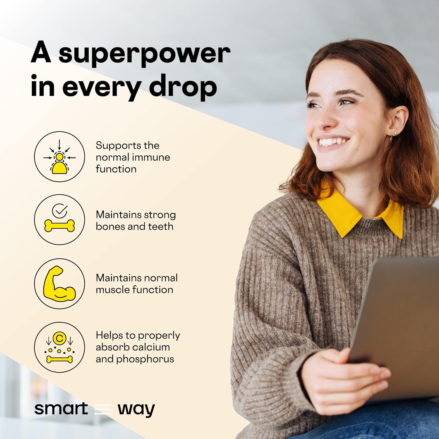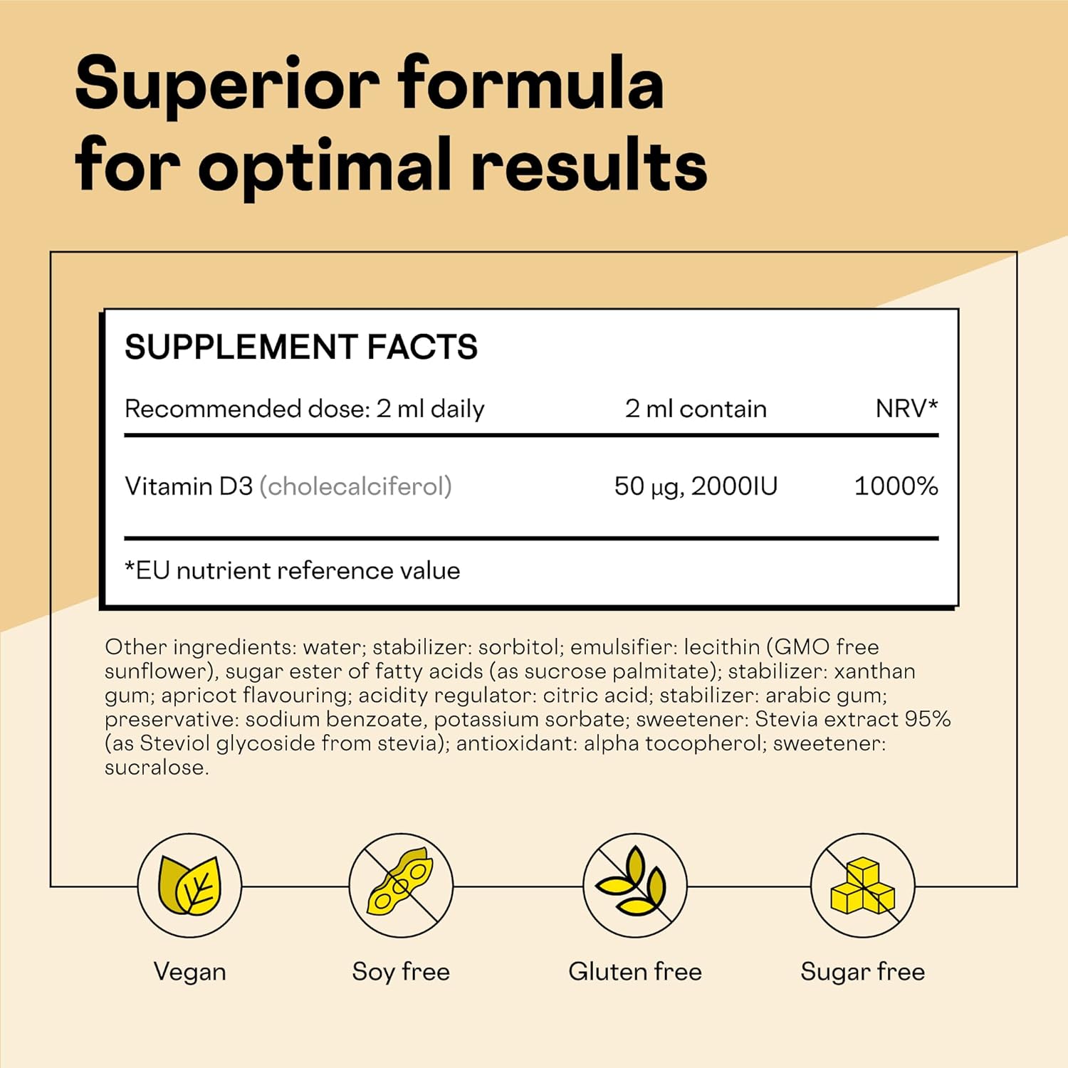 Vegan Liposomal Vitamin D Drops 2000 IU – Apricot Flavoured Vitamin D3 Drops – No Sugar, Soy, Gluten or Lactose – Highly Bioavailable VIT D Liposomal Liquid Vitamins by SMART WAY