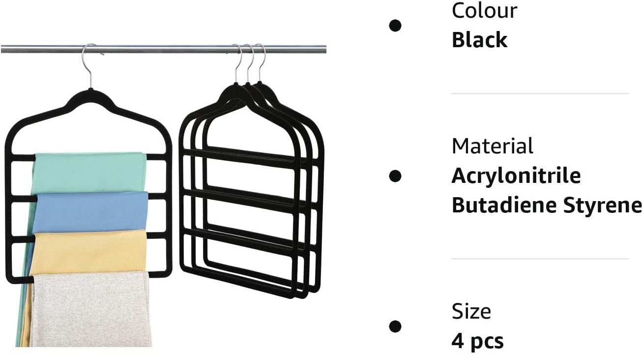 Velvet Trouser Hanger Space Saving Non-Slip Pants Hanger – Jeowoqao 4 Pack Jeans Hangers Multi Bar Velvet Clothes Hanger Closet Storage Organizer for Trousers Scarf Belts Ties Towel (Black)