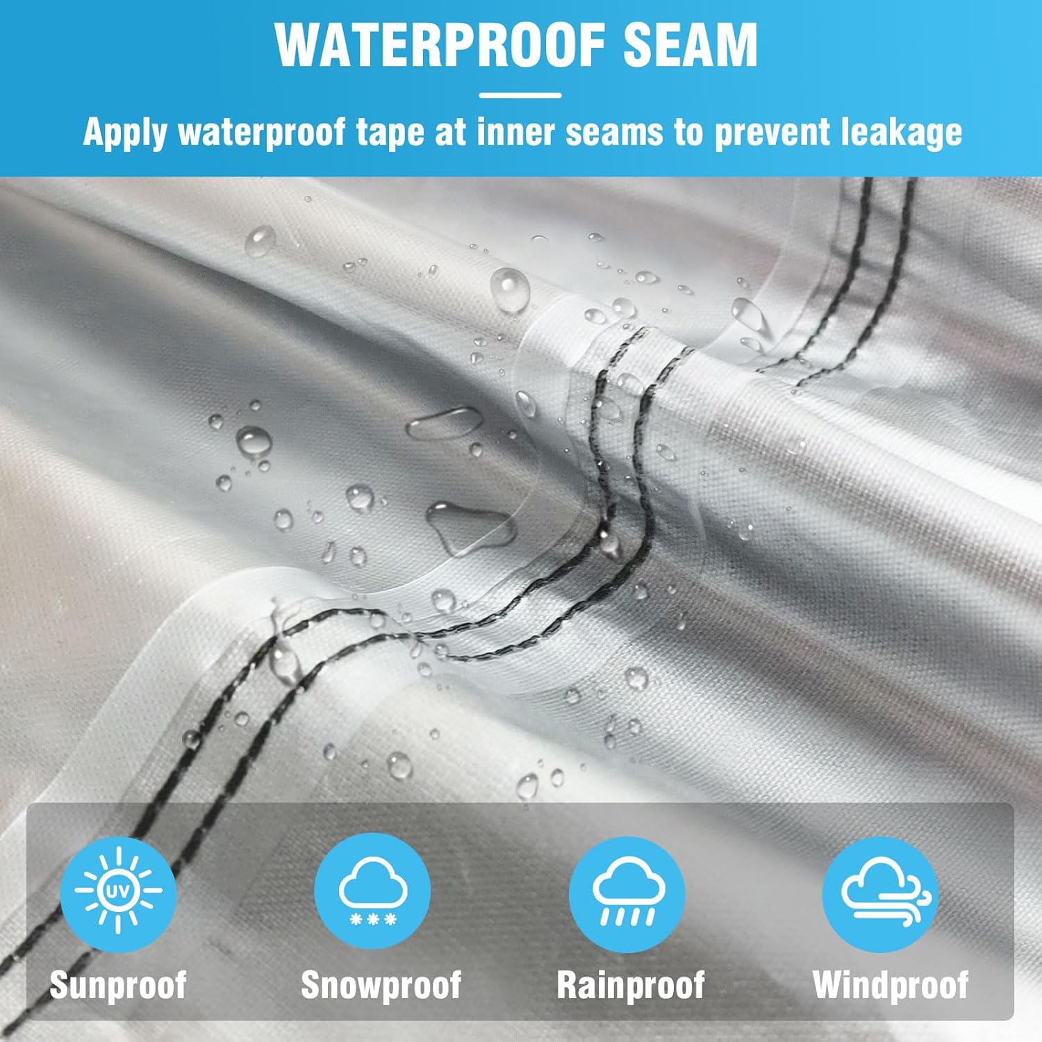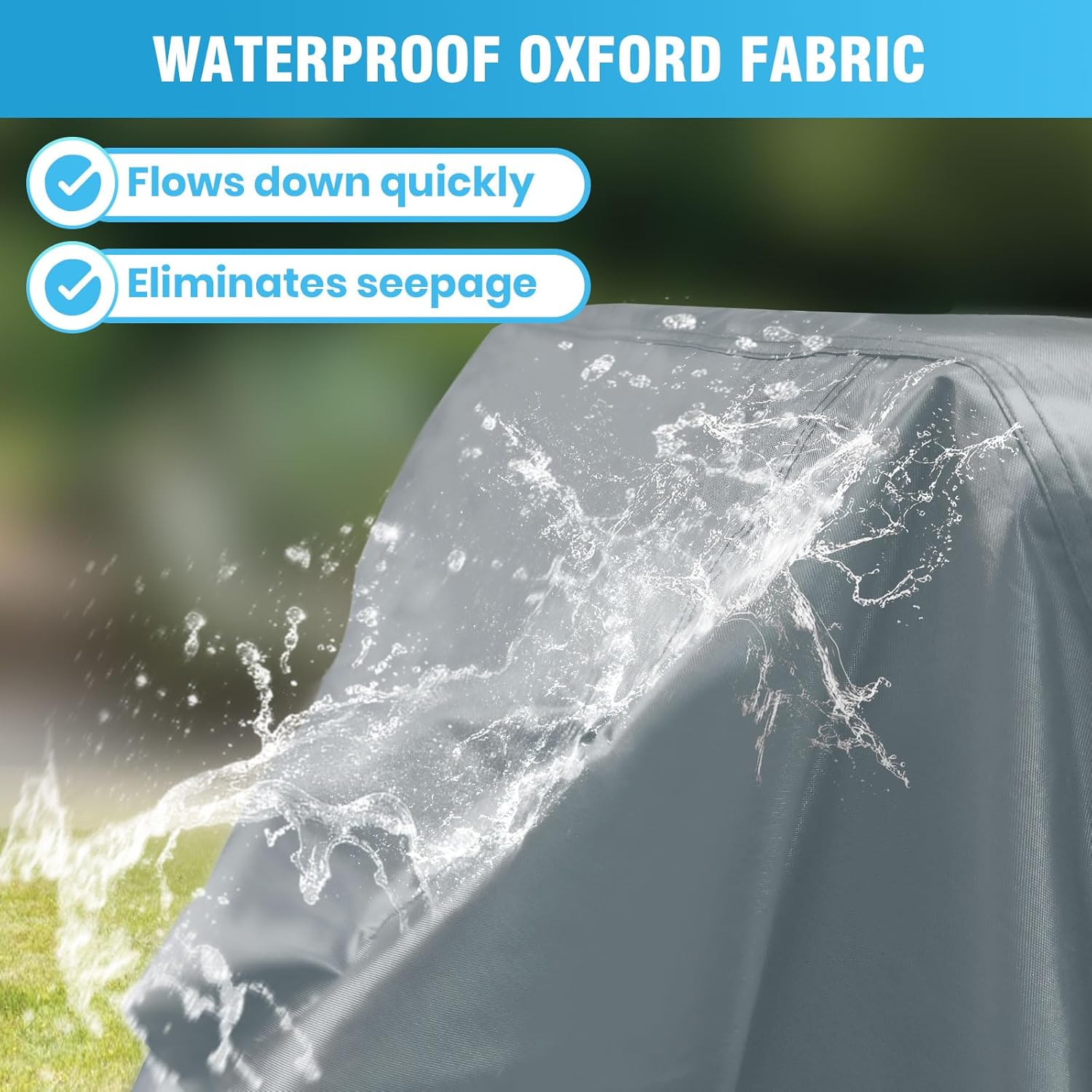 【Waterproof & UV Protection】 Velway waterproof patio furniture cover is made of Oxford polyester fabric with a silver-coated interior to effectively shield your furniture from sunlight, rain, snow, dust, leaves, bird droppings, and more. We’ve reinforced inner seams with waterproof tape for complete protection.