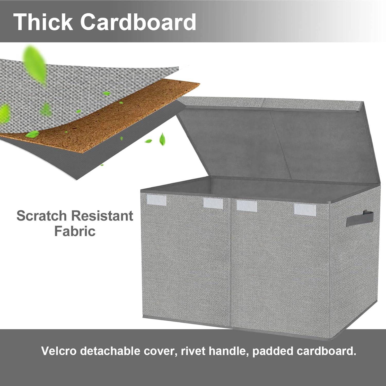 【Durable Materials】 Made from premium non-woven fabric and 2.5mm cardboard, this fabric toy box for boys comes with a sturdy handle on both the front and back side, made from breathable non-woven Fabric, allow for moving the decorative toy storage box heavy load.