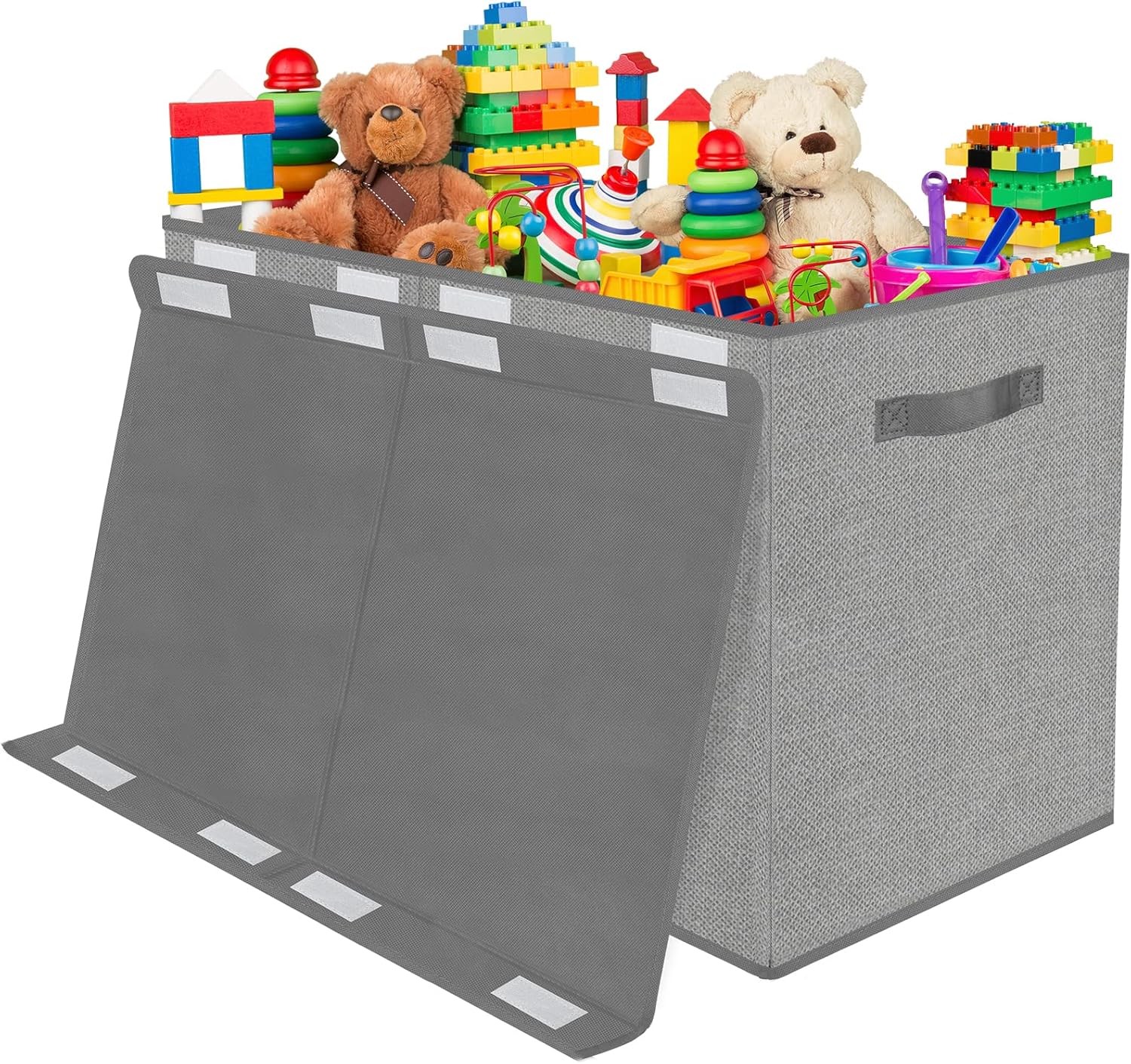 【Detachable】 Removable flip top lid keeps contents out of sight when closed and detaches with Velcro tab to be used as open top kids toy storage organizer.