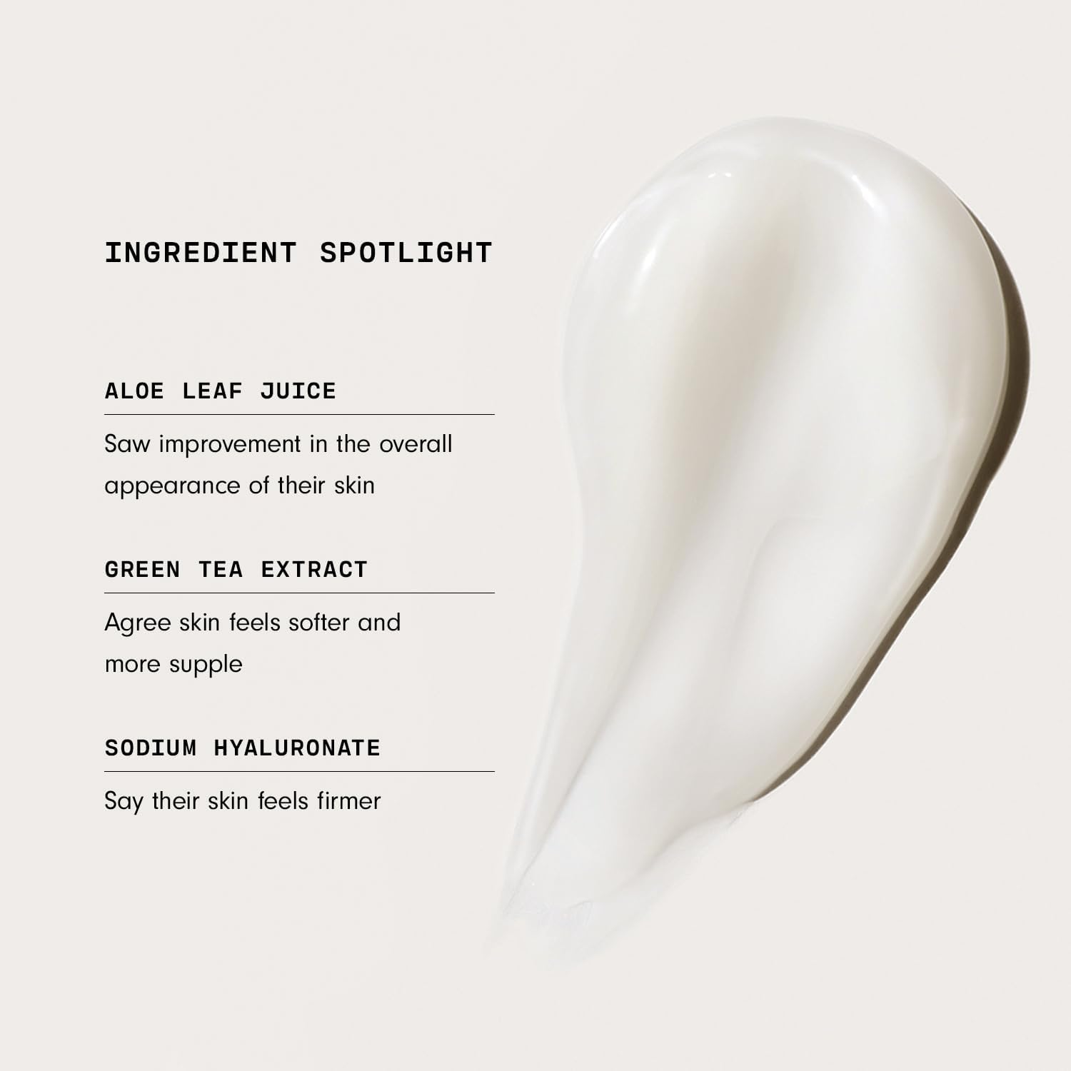 Draw In & Retain Moisture – This bouncy face moisturizer for dry skin contains a cousin of hyaluronic acid, sodium hyaluronate, that helps draw in moisture. Aloe leaf juice hydrates while antioxidant-rich green tea extract fights damaging free radicals and quiets inflammation.
