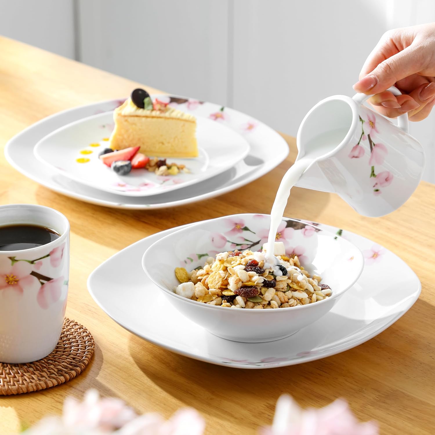 DECORATION AND GIFT: The square plate is also ideal for home decoration, housewarming , weddings, birthdays, family gatherings. VEWEET’s elegant dishware sets bring the beauty of nature to the table with warm, serene modern china, making your kitchen even more cozy