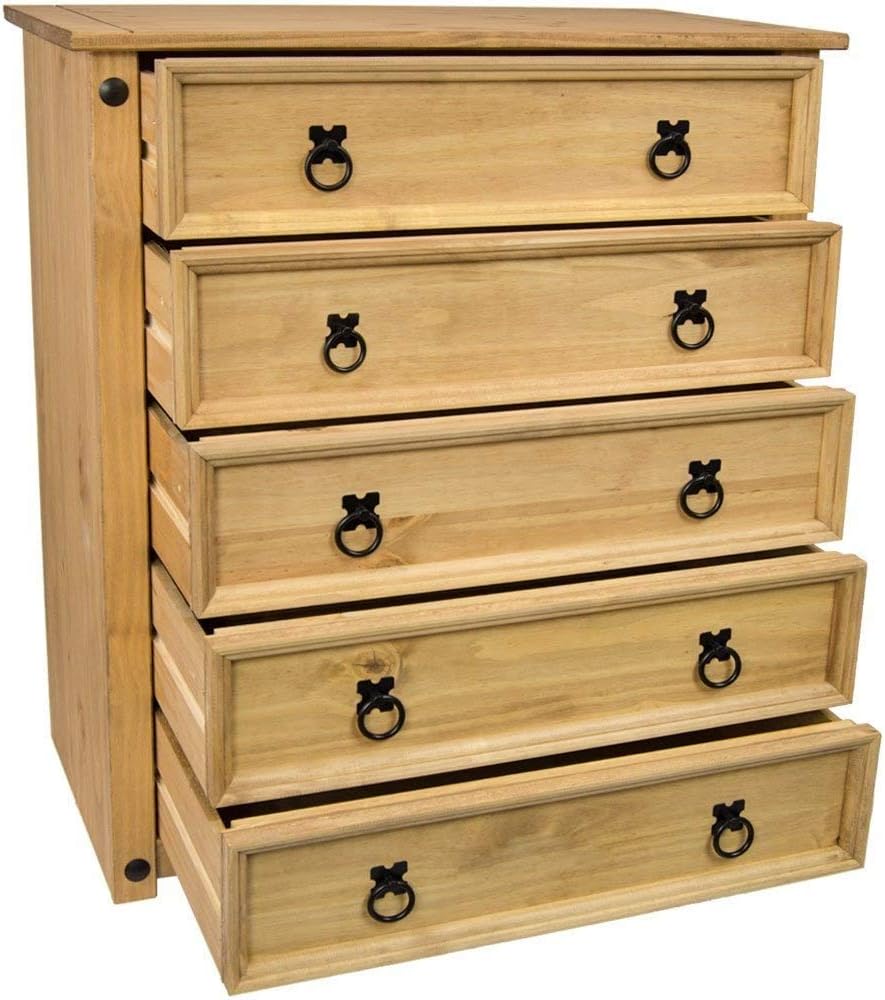 Vida Designs Corona, Chest Of Drawers, 5 Drawer, Solid, Pine Wood
