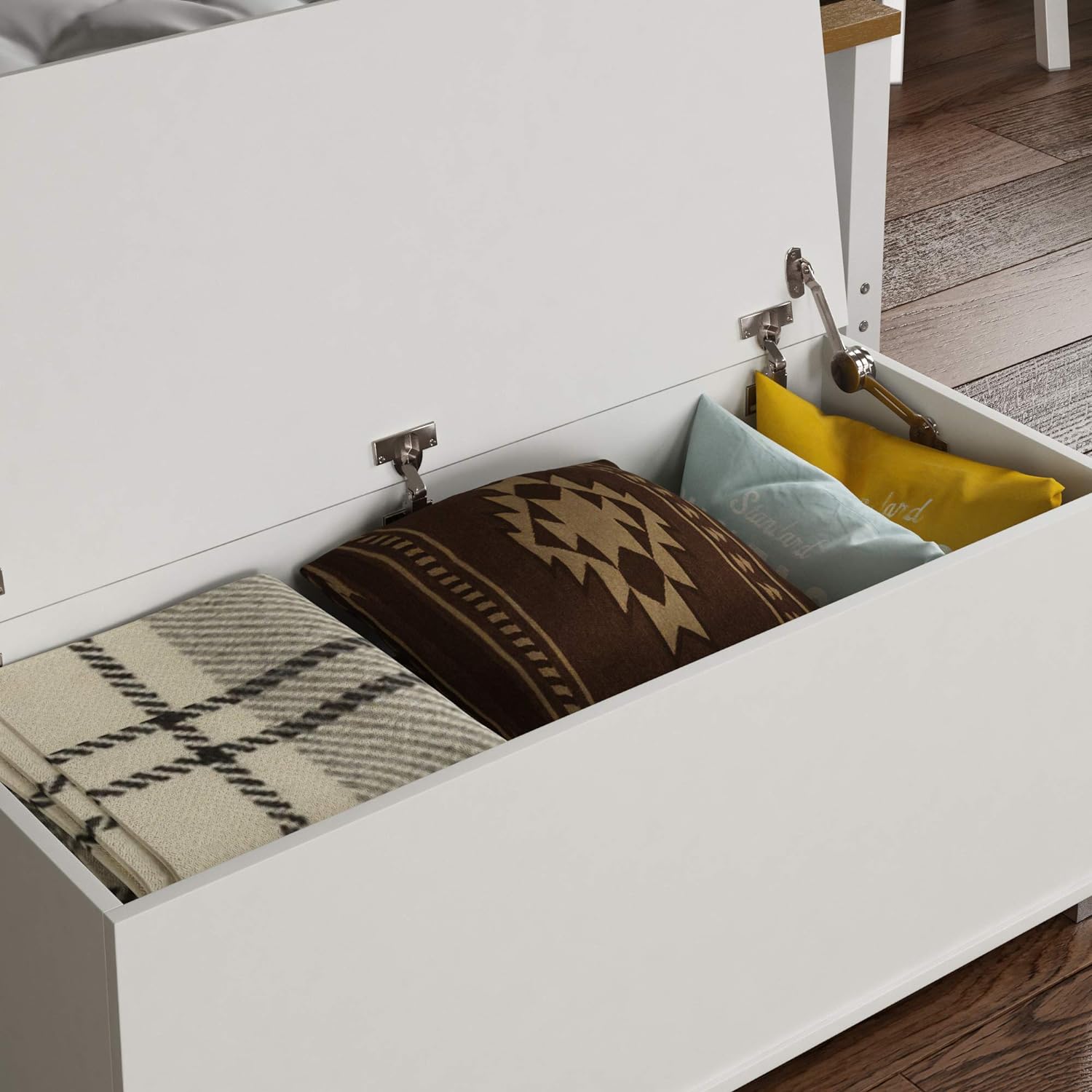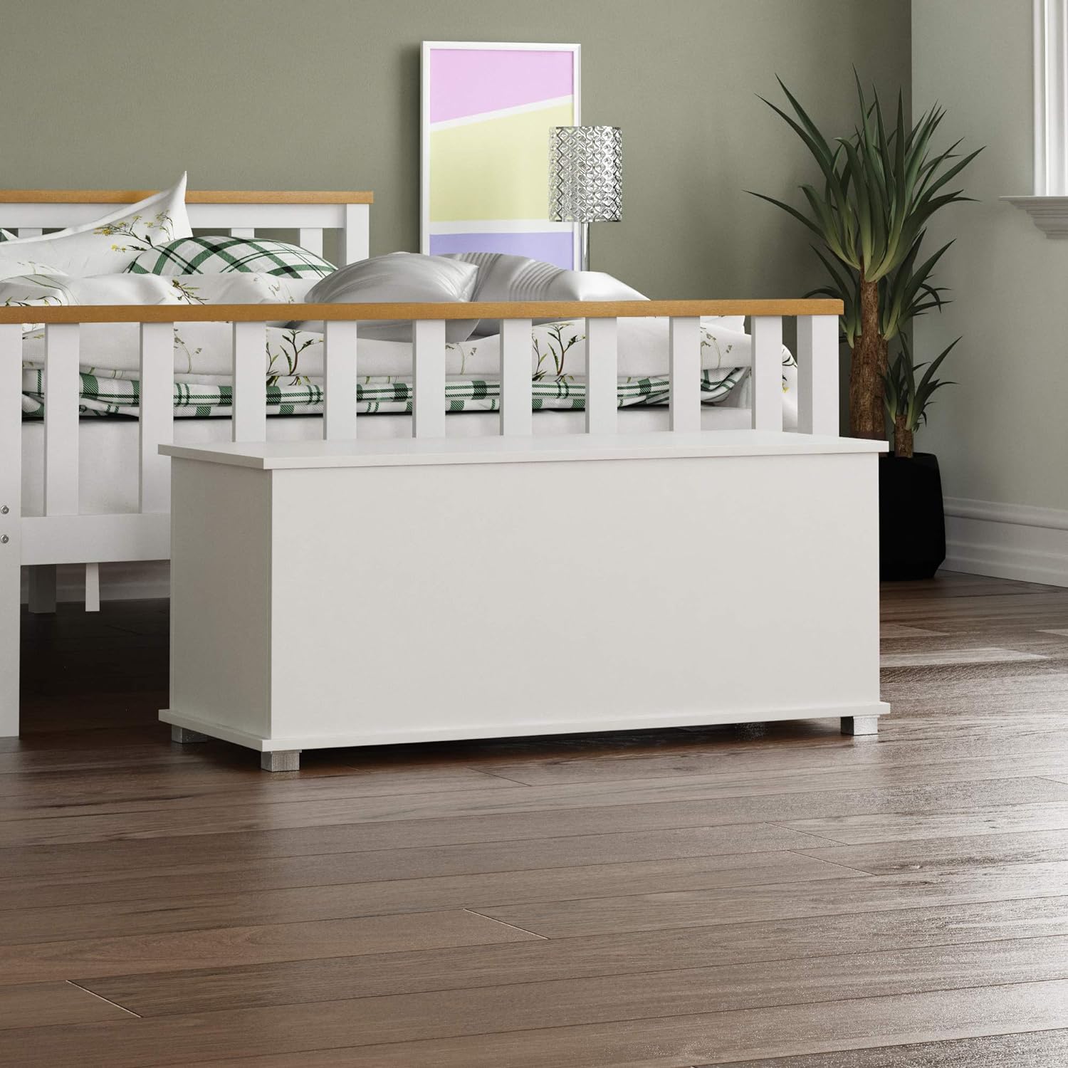 Vida Designs Leon Storage Ottoman, Wooden Chest with Lid, Seat, Stool, Window Bench, Blankets, Bedding, Toy Box, Footstool, White