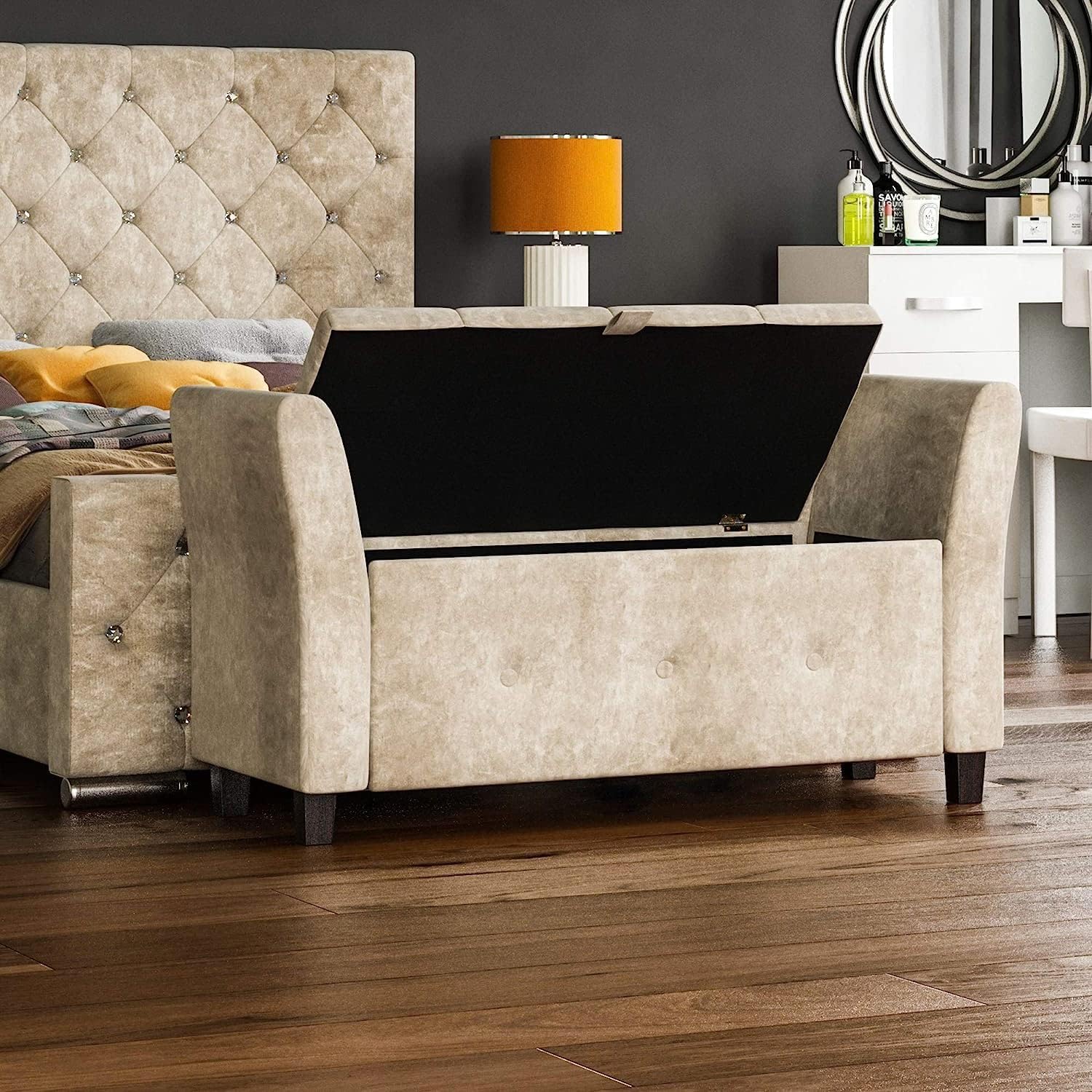 Vida Designs Seville Storage Ottoman, Fabric Chest with Lid, Seat, Stool, Window Bench, Chest, Toy Storage Box, Pouffe, Footstool, Champagne Velvet
