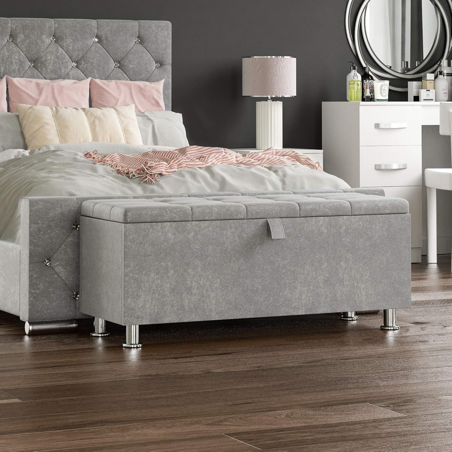 Vida Designs Valencia Storage Ottoman, Fabric Chest with Lid, Seat, Stool, Window Bench, Chest, Toy Storage Box, Pouffee, Footstool, Silver Velvet