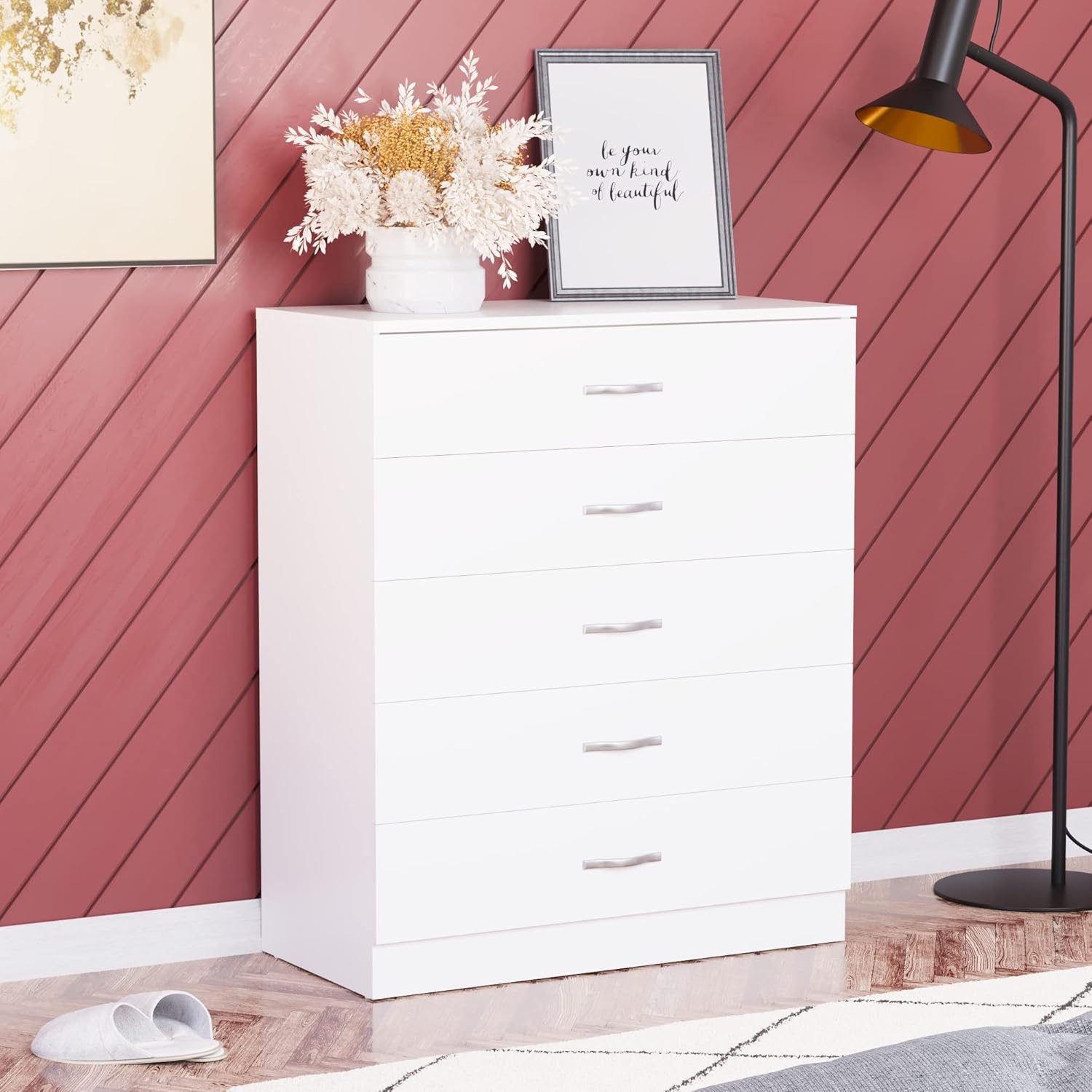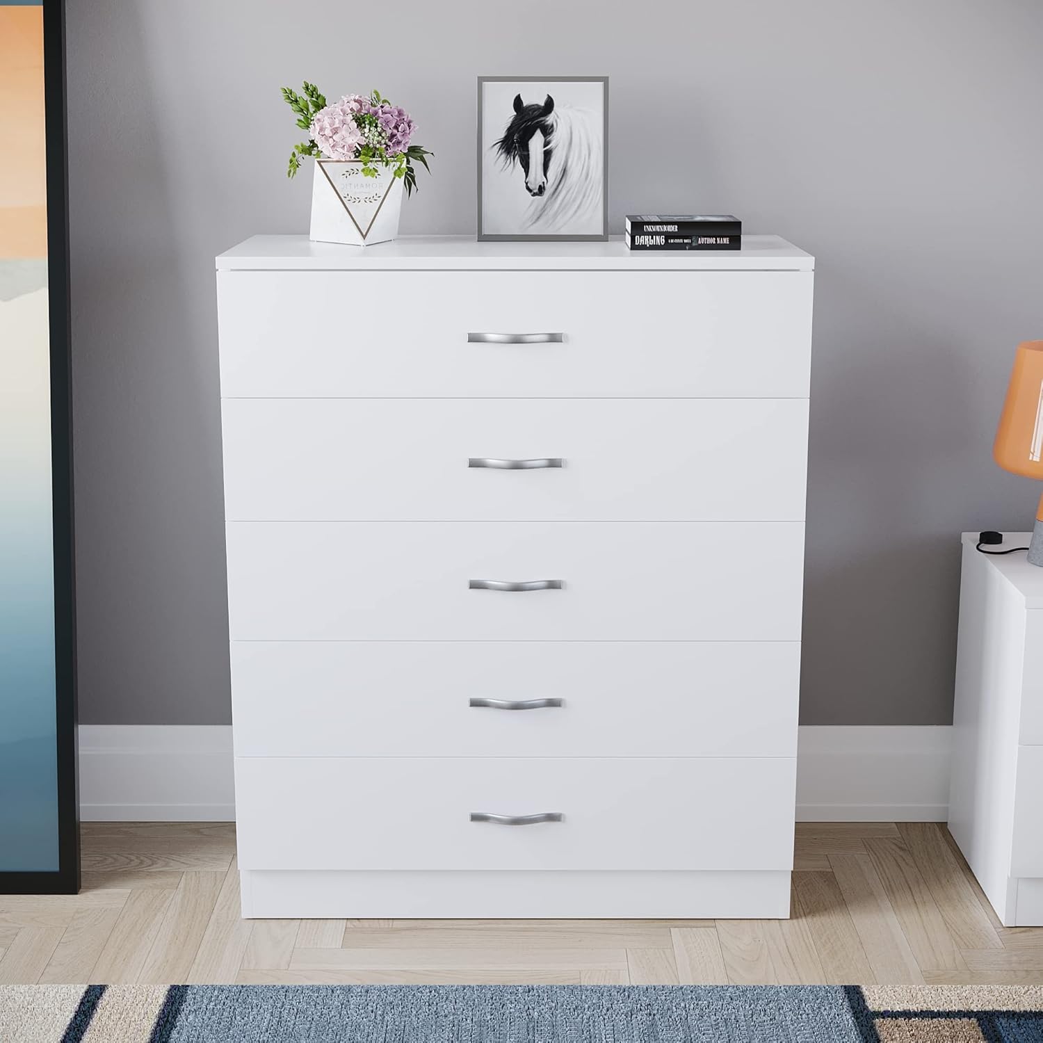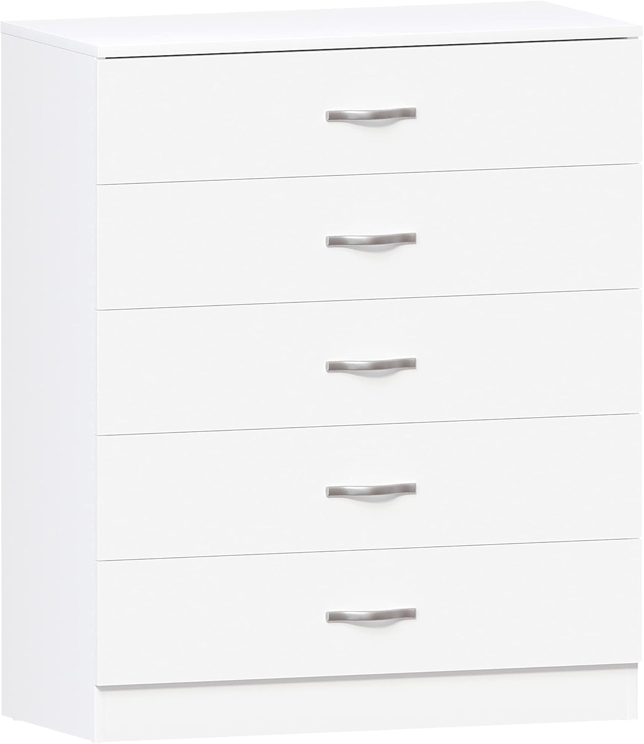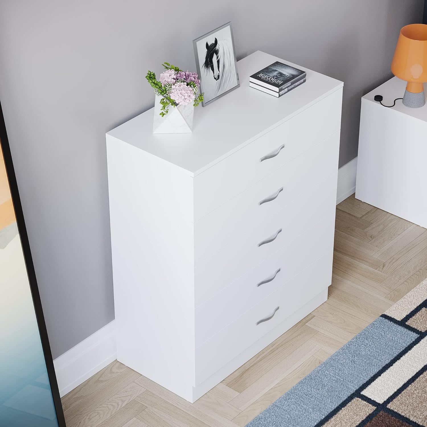 Vida Designs White Chest of Drawers, 5 Drawer With Metal Handles and Runners, Unique Anti-Bowing Drawer Support, Riano Bedroom Furniture