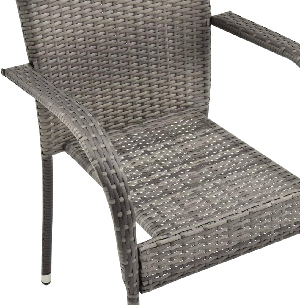 vidaXL 4x Stackable Outdoor Chairs Patio Furniture Portable Lawn Desk Seating Chair Lightweight Home Garden Dining Seat Grey Poly Rattan